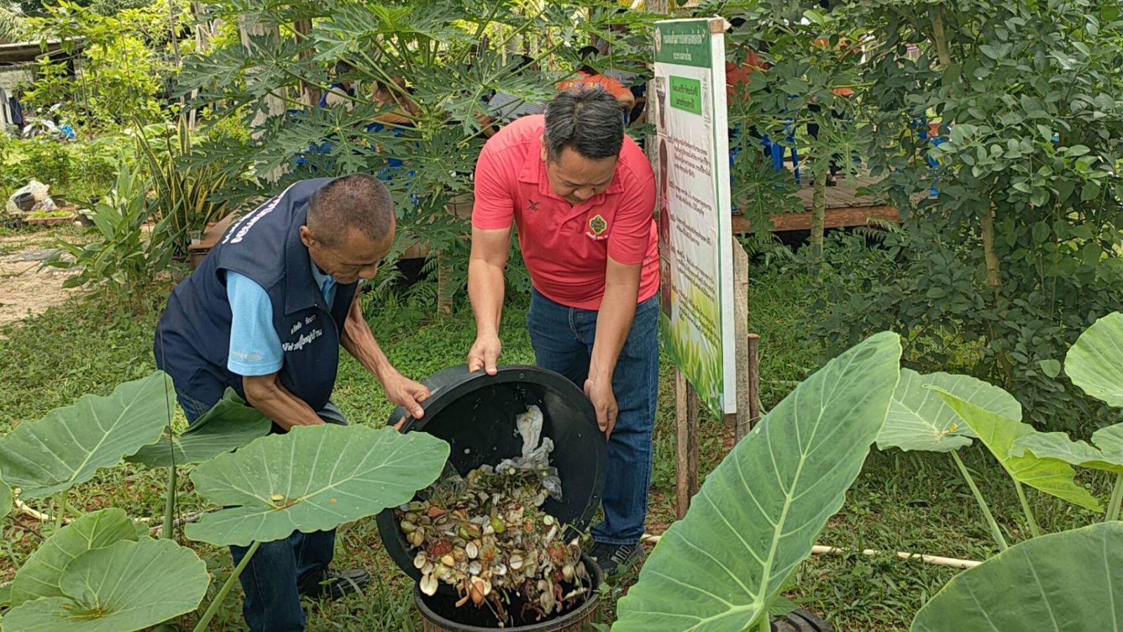 วันที่ 21 กันยายน 2566 เวลา 12.00 น. นายสุกิจ มีพริ้ง นายอำเภอท่าฉาง พร้อมด้วย ปลัดอำเภอ หัวหน้าส่วนราชการ พนักงาน เจ้าหน้าที่ สมาชิกอาสารักษาดินแดน (อส.) รับประทานอาหารร่วมกัน บริเวณศูนย์เรียนรู้โครงการอันเนื่องมาจากพระราชดำริอำเภอท่าฉาง ตั้งอยู่ภายในบริเวณที่ว่าการอำเภอท่าฉาง โดยนำพืช ผัก ที่ปลูก ปลาที่เลี้ยง มาประกอบอาหาร ซึ่งบริเวณศูนย์เรียนรู้โครงการอันเนื่องมาจากพระราชดำริอำเภอท่าฉาง มีการปลูกผักสวนครัว ไม้ผลต่าง ๆ หมาก พลู บ่อเลี้ยงปลา บ่อเลี้ยงแหนแดง โรงเรือนเลี้ยงไก่ไข่ ไว้สำหรับเป็นแหล่งเรียนรู้ตามหลักปรัชญาของเศรษฐกิจพอเพียง เพื่อสร้างความมั่นคงด้านอาหาร สร้างรายได้ ประหยัดรายจ่าย พัฒนาคุณภาพชีวิตของบุคลากรให้มีความมั่นคง มั่งคั่ง ยั่งยืน สืบสานพระราชปณิธาน และน้อมเกล้าน้อมกระหม่อมรำลึกในพระมหากรุณาธิคุณ พระบาทสมเด็จพระบรมชนกาธิเบศร มหาภูมิพลอดุลยเดชมหาราช บรมนาถบพิตร และขับเคลื่อนกิจกรรม “บ้านนี้มีรัก ปลูกผักกินเอง” ผู้นำทำก่อน และขยายผลไปยังบ้านเรือนของประชาชน เพื่อจะได้มีอาหารที่ปลอดภัยไว้รับประทาน นับเป็นการแบ่งเบาภาระค่าใช้จ่ายในครัวเรือนได้เป็นอย่างดี และจะได้ขยายผลไปยังหมู่บ้านเป้าหมายตามโครงการหนึ่งตำบล หนึ่งหมู่บ้านยั่งยืน เพื่อขับเคลื่อนโครงการหนึ่งตำบล หนึ่งหมู่บ้านยั่งยืน (Sustainable Village) และขยายผลไปจนครบทุกหมู่บ้านต่อไป