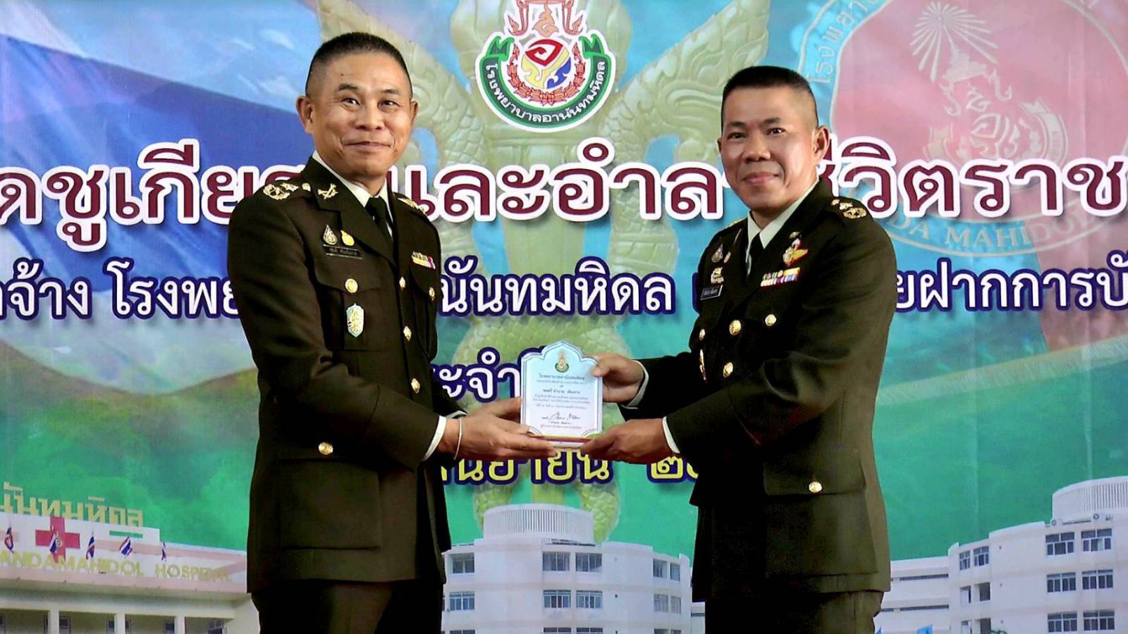 ซึ่งในพิธีดั้งกล่าว ยังได้รับเกียรติจาก พลตรี ชูสิทธิ์ ศรีอุทโยภาส รองเจ้ากรมแพทย์ทหารบก มอบโล่ประกาศเกียรติคุณ และของที่ระลึกให้แก่ พลตรี อำนวย เติมเกาะ ผู้อำนวยการโรงพยาบาลอานันทมหิดล ในโอกาสที่จะเกษียณอายุราชการในครั้งนี้ด้วย พร้อมกล่าวสดุดี ให้กับผู้อำลาชีวิตราชการทหาร เพื่อเป็นการแสดงความยินดี และขอบคุณ จากผู้บังคับบัญชาทุกระดับชั้น ในฐานเป็นผู้ที่ได้เสียสละ ทุ่มเท ทั้งกำลังกาย และกำลังสติปัญญา ทำคุณประโยชน์ให้แก่โรงพยาบาลตลอดชีวิตการรับราชการ