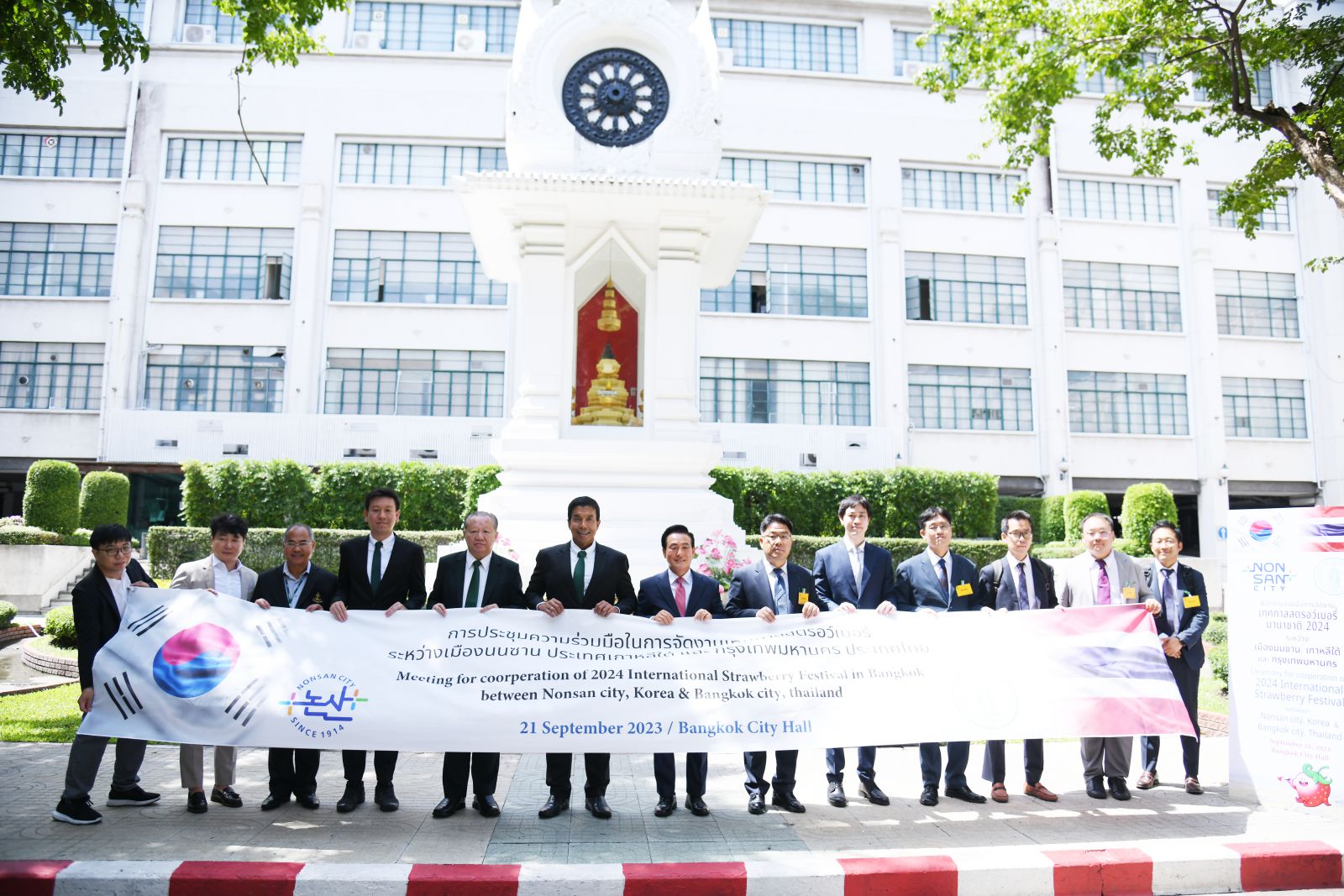 สำหรับงานเทศกาลสตรอว์เบอร์รีนานาชาติ ณ กรุงเทพมหานคร (International Strawberry Festival in Bangkok) เป็นความคิดริเริ่มของเมืองนนซานที่จะจัดงานดังกล่าวในระดับนานาชาติเป็นครั้งแรก โดยได้รับงบประมาณสนับสนุนจากรัฐบาลสาธารณรัฐเกาหลี ซึ่งเป็นการขยายการดำเนินงานจากการจัดงานฯ ภายในเมืองนนซานเองในช่วงเดือนมีนาคมของทุกปีเป็นระยะเวลา 27 ปีติดต่อกัน และกรุงเทพมหานครได้รับคัดเลือกเป็นสถานที่จัดงานฯ โดยมีวัตถุประสงค์เพื่อเผยแพร่สตรอว์เบอร์รีคุณภาพดีจากเมืองนนซานให้เป็นที่รู้จักมากยิ่งขึ้นในระดับสากล สนับสนุนศักยภาพสินค้าทางการเกษตรของเกาหลีไปสู่ตลาดโลก และส่งเสริมความสัมพันธ์อันดีระหว่างเมืองนนซานและกรุงเทพมหานคร โดยมีลักษณะเป็นการจัดแสดงและจำหน่ายสตรอว์เบอร์รีสายพันธุ์ต่าง ๆ และผลิตภัณฑ์สินค้าแปรรูปจากสตรอว์เบอร์รี ตลอดจนการนำศิลปินเกาหลีชื่อดังมาร่วมงานฯ เพื่อดึงดูดประชาชนและนักท่องเที่ยวให้มาเข้าร่วมมากยิ่งขึ้น ทั้งนี้ มีกำหนดจัดงานฯ ระหว่างวันที่ 15-18 กุมภาพันธ์ 2567 ณ ลานพาร์ค พารากอน ศูนย์การค้าสยามพารากอน เขตปทุมวัน