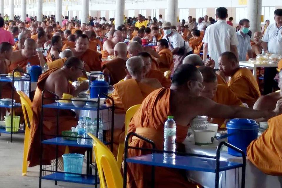 ร่วมฉันภัตตาหารเพล โดยทางคณะสงฆ์ได้เรียนเชิญนายชูศักดิ์ แม้นเดช สมาชิกสภาผู้แทนราษฎรจังหวัดกาญจนบุรี เขต 2 และ ร้อยโททศพล ไชยโกมินทร์ ผู้ว่าราชการจังหวัดกาญจนบุรี นายอำเภอด่านมะขามเตีย หัวหน้าส่วน และแขกผู้มีเกียรติได้ร่วมกันถวายภัตตาหารเพลแด่พระสงฆ์ตามโตํะต่างๆที่ทางวัดหนองหญ้าปล้องได้จัดเตรียมไว้กว่า 100 โต๊ะ พระสังฆาธิการ เจ้าอาวาส รองเจ้าอาวาส และ ผู้ช่วยเจ้าอาวาสได้เข้าประชุมเสร็จกิจกรรมการประชุม