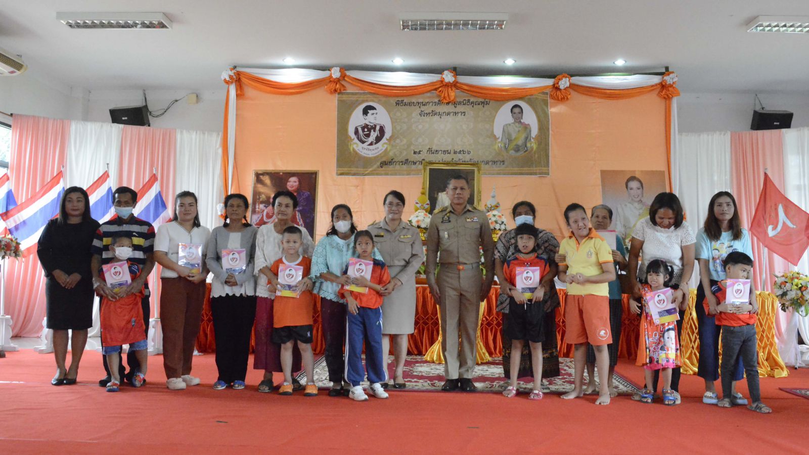 มุกดาหาร-ผู้ว่าราชการจังหวัดมุกดาหาร จัดพิธีมอบทุนสนับสนุนการศึกษามูลนิธิคุณพุ่ม ในทูลกระหม่อมหญิงอุบลรัตนราชกัญญา สิริวัฒนาพรรณวดี เพื่อสนับสนุนการพัฒนาเด็กและเยาวชนผู้พิการให้ตรงตามความจำเป็นเฉพาะบุคคลนั้น ในปีการศึกษา 2566