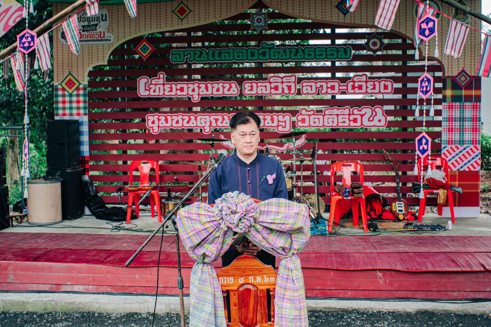 นครนายก - ณ ลานวัฒนธรรมวิถีถิ่นลาวเวียง ชุมชนคุณธรรมวัดคีรีวัน อำเภอเมือง จังหวัดนครนายก นายบัญชา เชาวรินทร์ ผู้ว่าราชการจังหวัดนครนายก เป็นประธานในพิธีเปิดงานและร่วมกับเอกอัครรัฐทูตสาธารณรัฐประชาธิปไตยประซาชนลาว ลั่นฆ้องเปิดงานโดยมีนายบรรจง มงคลยง ประธานสภาวัฒนธรรมจังหวัดนครนายก กล่าวรายงาน