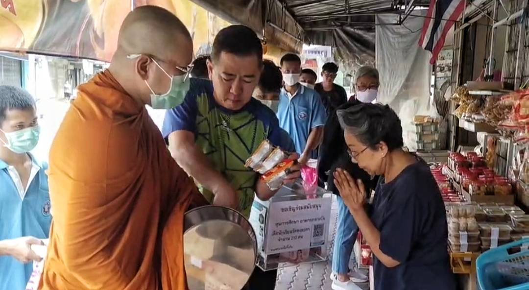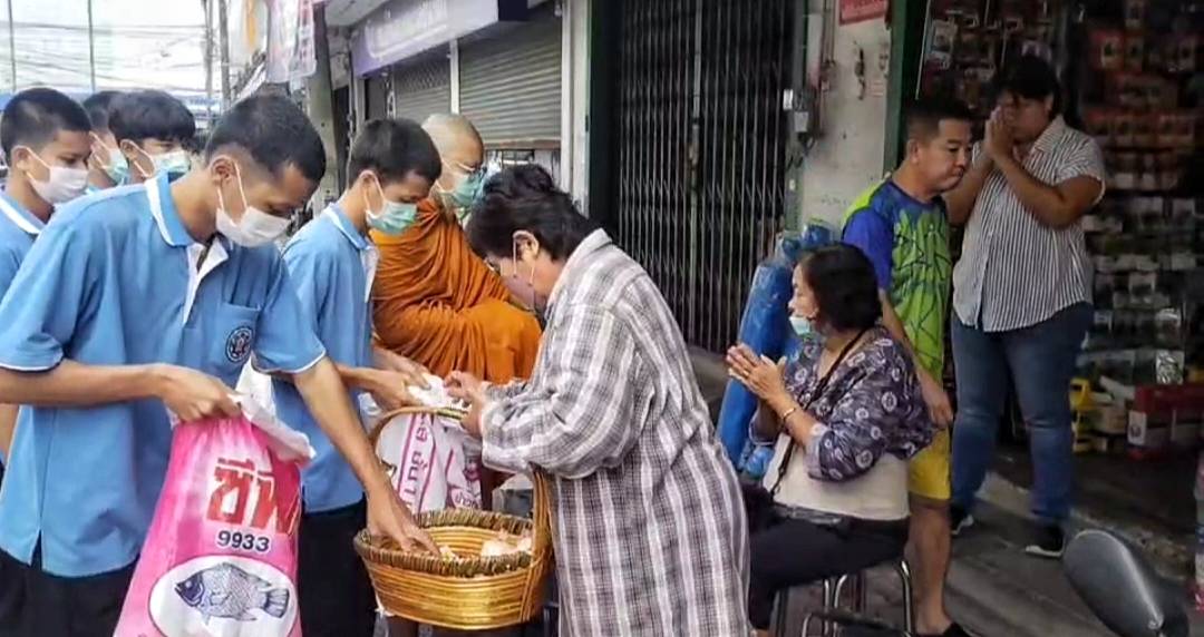 เจ้าอาวาสวัดดงละครออกรับบิณฑบาต ช่วยเหลือเด็กนักเรียนวัดดงละคร200คน