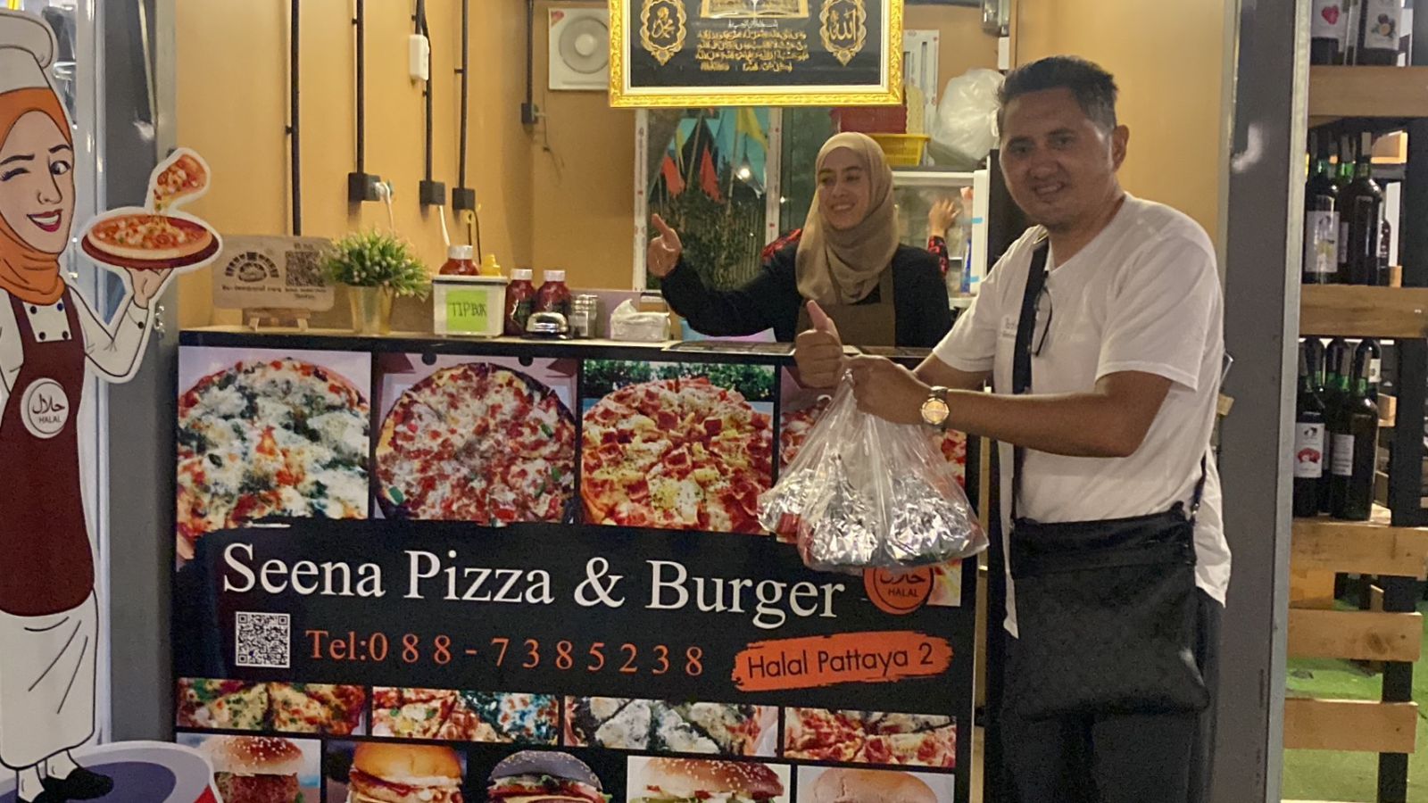 ซึ่งจะเปิดบริการทุกวันตั้งแต่เวลาประมาณ 15.00 น.-23.00 น. โดยบริการพิซซ่าและเบอร์เกอร์ฮาลาลที่เหมาะกับคนไทยและชาวต่างชาติที่ชื่นชอบอาหารฮาลาลสูตรต้นตำหรับ ซึ่งทางร้านยังมีบริการเดลิเวอรี่ สามารถโทรศัพท์สอบถามและสั่งอาหารได้ที่หมายเลข 088-738 5238
