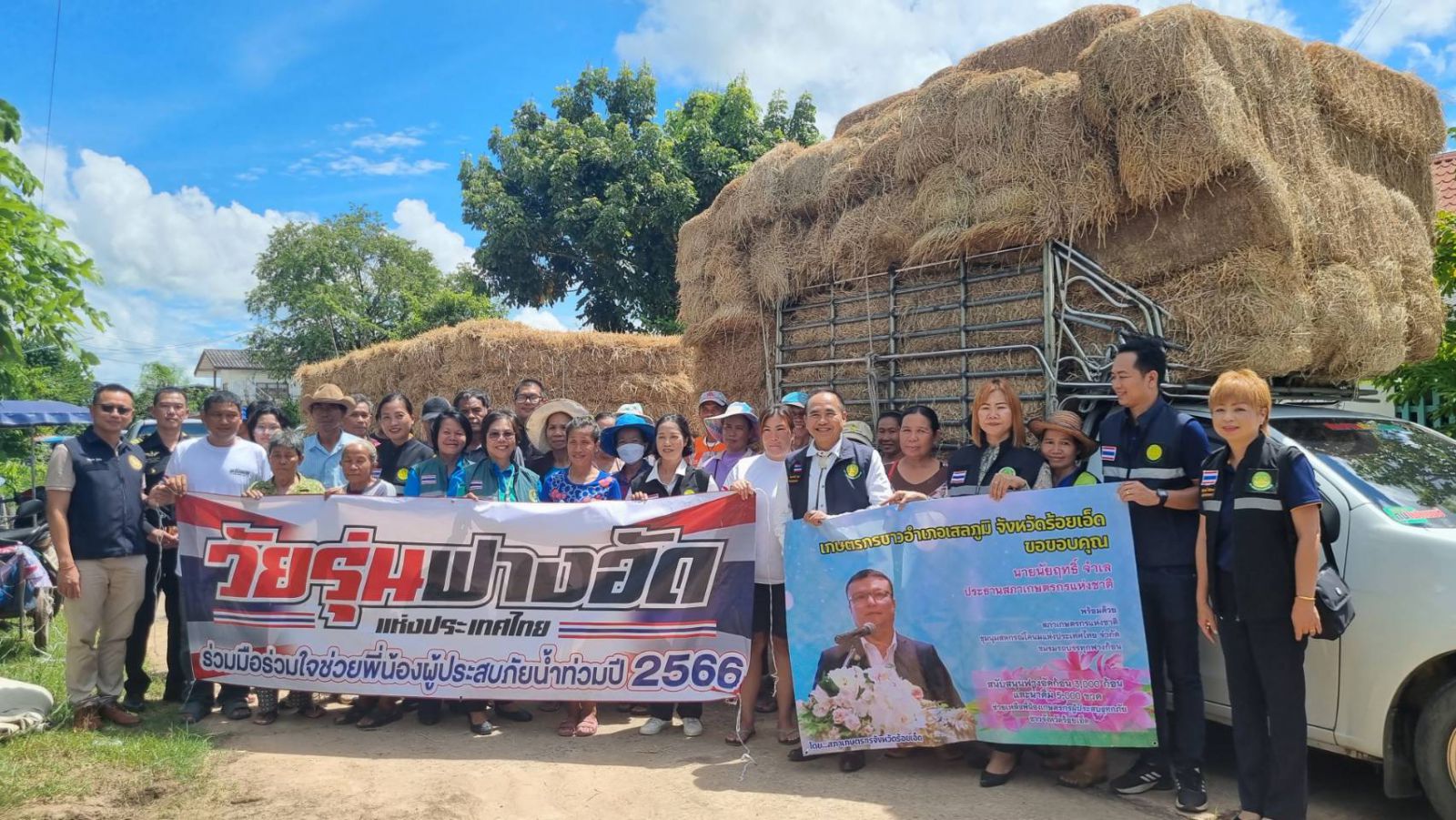 ร้อยเอ็ดมอบฟางอัดก้อน3ก้อนช่วยเหลือ เกษตรกรผู้ประสบอุทกภัย