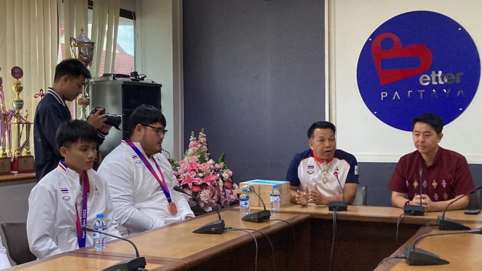 'นายกเมืองพัทยา'ร่วมยินดีกับสองนักกีฬา คูราชเหรียญทองแดงหางโจวเกมส์