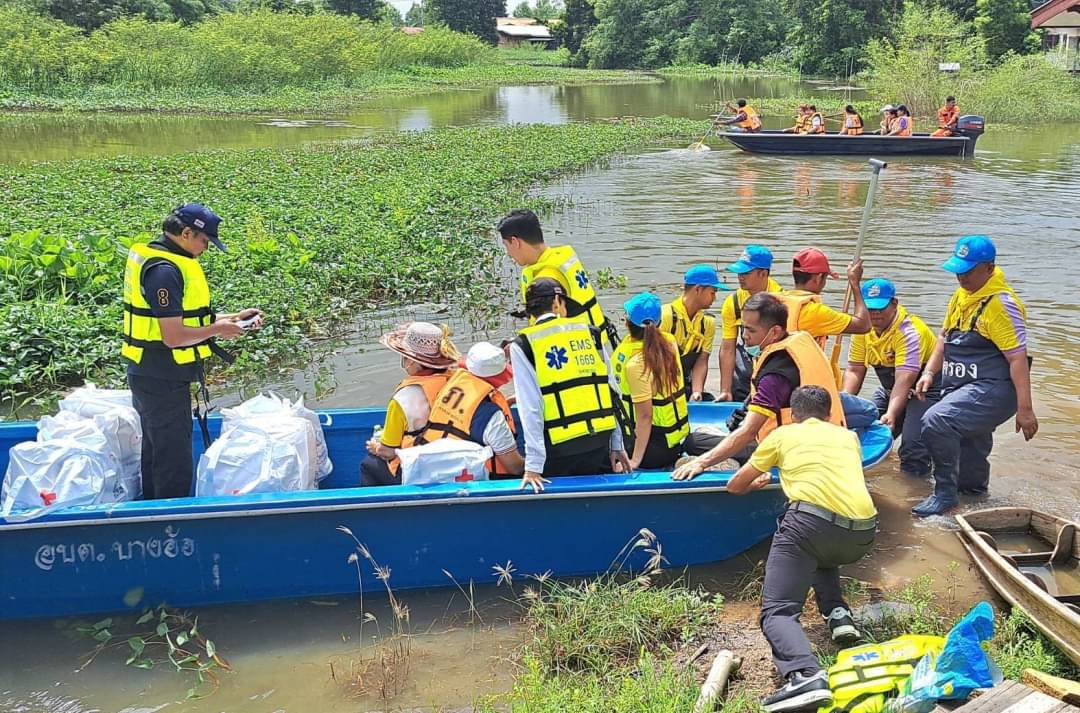 จึงรายงานขอความช่วยเหลือผ่านทางระบบแอปพลิเคชั่น “พ้นภัย” ซึ่งได้รับการตอบรับการช่วยเหลือจากสภากาชาดไทย โดยสำนักงานศูนย์บรรเทาทุกข์และประชานามัยพิทักษ์ สภากาชาดไทย ได้มอบชุดธารน้ำใจบรรเทาทุกข์ผู้ประสบภัย จำนวน 994 ชุด ให้กับผู้ประสบอุทกภัย พร้อมลงพื้นที่ทางเรือนำชุดธารน้ำใจ ดังกล่าว ส่งมอบให้กับครอบครัวผู้สูงอายุ ผู้ป่วยติดเตียง ที่ไม่สามารถเดินทางมารับได้ เพื่อเป็นขวัญกำลังใจ และเพื่อบรรเทาความเดือดร้อน และจะประสานหน่วยงานต่างๆ ให้การช่วยเหลือต่อไป
