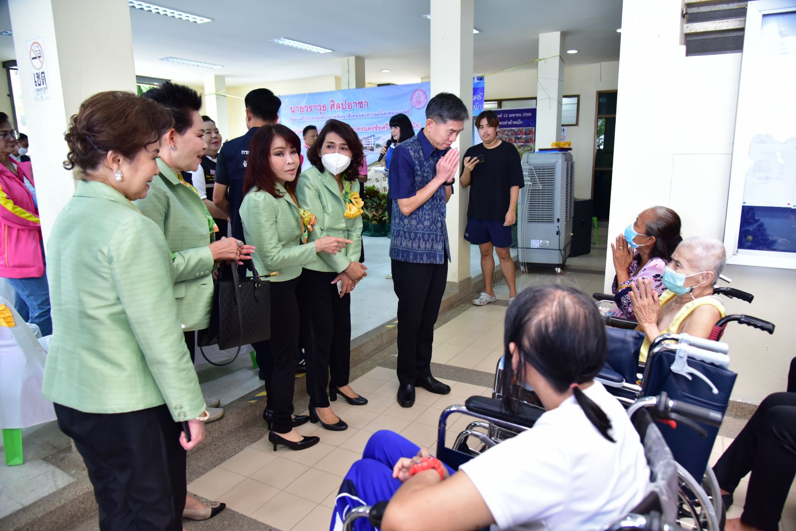 วันที่ 8 ตุลาคม 2566 นายวราวุธ ศิลปอาชา รัฐมนตรีว่าการกระทรวงการพัฒนาสังคมและความมั่นคงของมนุษย์และคณะผู้บริหาร พบปะครือข่ายอาสาสมัครพัฒนาสังคมและความมั่นคงของมนุษย์ ครอบครัวผู้พิการ และสมาชิกผู้พักอาศัยในโครงการบ้านเอื้ออาทร ณ อาคารนิติบุคคลบ้านเอื้ออาทรท่าตำหนัก สำนักงานเคหะจังหวัดนครปฐม สาขา 1 ต.ท่าตำหนัก อ.นครชัยศรี จ.นครปฐม โดยมีนายสุรศักดิ์ เจริญศิริโชติ ผู้ว่าราชการจังหวัดนครปฐม นายอนุชา สะสมทรัพย์ ส.ส.นครปฐมเขต5 นายศุภโชค ศรีสุขจร ส.ส.นครปฐมเขต2 นางสาวศิริพร โรจนสุกาญจน พมจ.นครปฐม ให้การต้อนรับ และนายสมเจต ประพันธ์บัณฑิต รองผู้ว่าการการเคหะแห่งชาติ กล่าวรายงานข้อมูลการทำงานของหน่วยงานในสังกัดกระทรวงการพัฒนาสังคมและความมั่นคงของมนุษย์ กับหน่วยงานเครือข่ายภาคเอกชนและภาคประชาชน พร้อมมอบรถนั่งคนพิการ (วีลแชร์ ) จำนวน 2 คัน พร้อมทั้งเยี่ยมชมการออกบูทแสดงผลิตภัณฑ์และจำหน่ายสินค้าจากสมาชิกเครือข่ายบ้านเอื้ออาทร จำหน่ายต้นไม้ (แก้วปลูกกล้า) ชมสินค้าของคนพิการ ฯลฯ พร้อมทั้งเข้าร่วม กิจกรรมปลูกต้นไม้ 5 ตัน (ต้นรวงผึ้งและต้นอินจัน) เดินชมโมเดลปั๊มน้ำ SOLAR CELL และชมการสาธิตการจัดการขยะและถังหมักรักษ์โลกของโครงการบ้านเอื้ออาทร