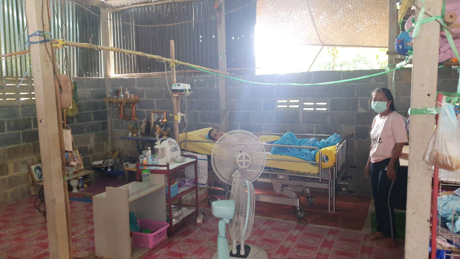 สำหรับนางสาววิไลวรรณ ผู้เป็นแม่นั้น ประสบอุบัติเหตุลื่นล้มหลังกระแทกพื้น เลยทำให้กลายเป็นผู้ป่วยติดเตียงมาแล้ว 2 ปี ส่วนเตียงที่นอนอยู่นั้นทางผู้ใหญ่บ้านได้พาไปเอาที่ อบต.โดยก่อนหน้านี้ นอนกับแคร่ไม้ ตั้งแต่ป่วยมาในระยะ 2 เกือบ 3 ปี ก็จะมีทางผู้ใหญ่บ้านที่เข้ามาดูแล ส่วนทางอสม. ก็จะมาเข้ามาตรวจวัดความดันให้