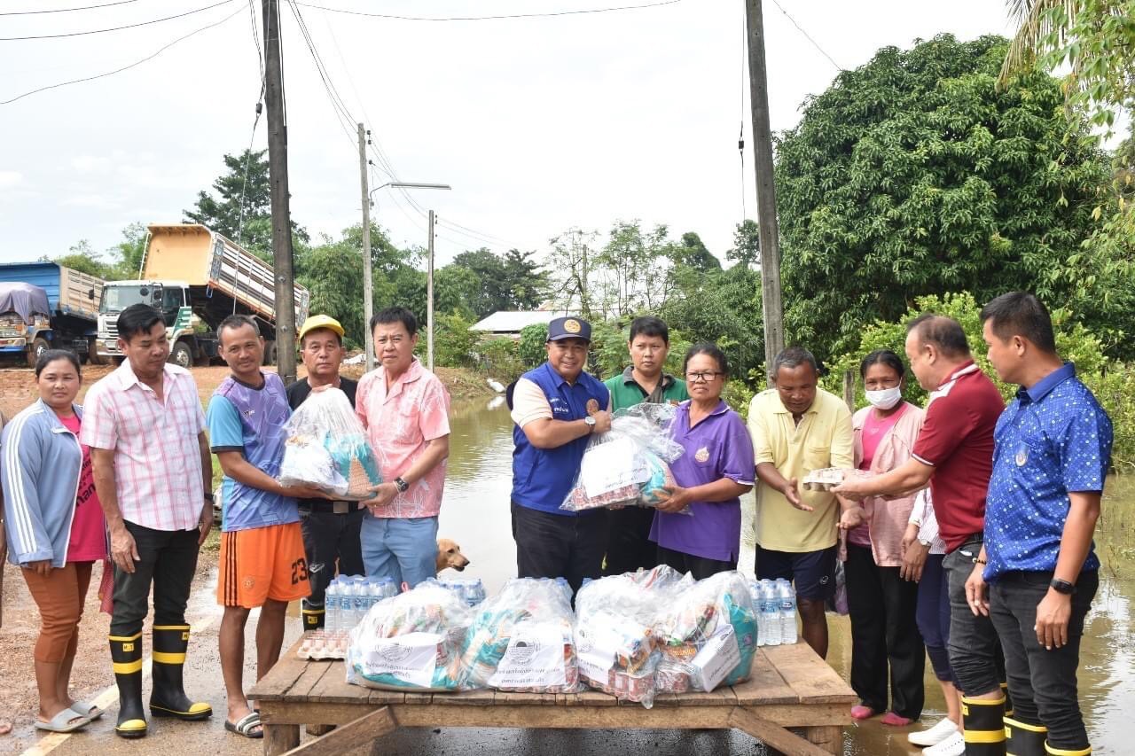 นอภ.เมืองควงนายกฯทม.สระแก้วลงพื้นที่ มอบถุงยังชีพผู้ถูกน้ำท่วมบ้านลัดกะสัง
