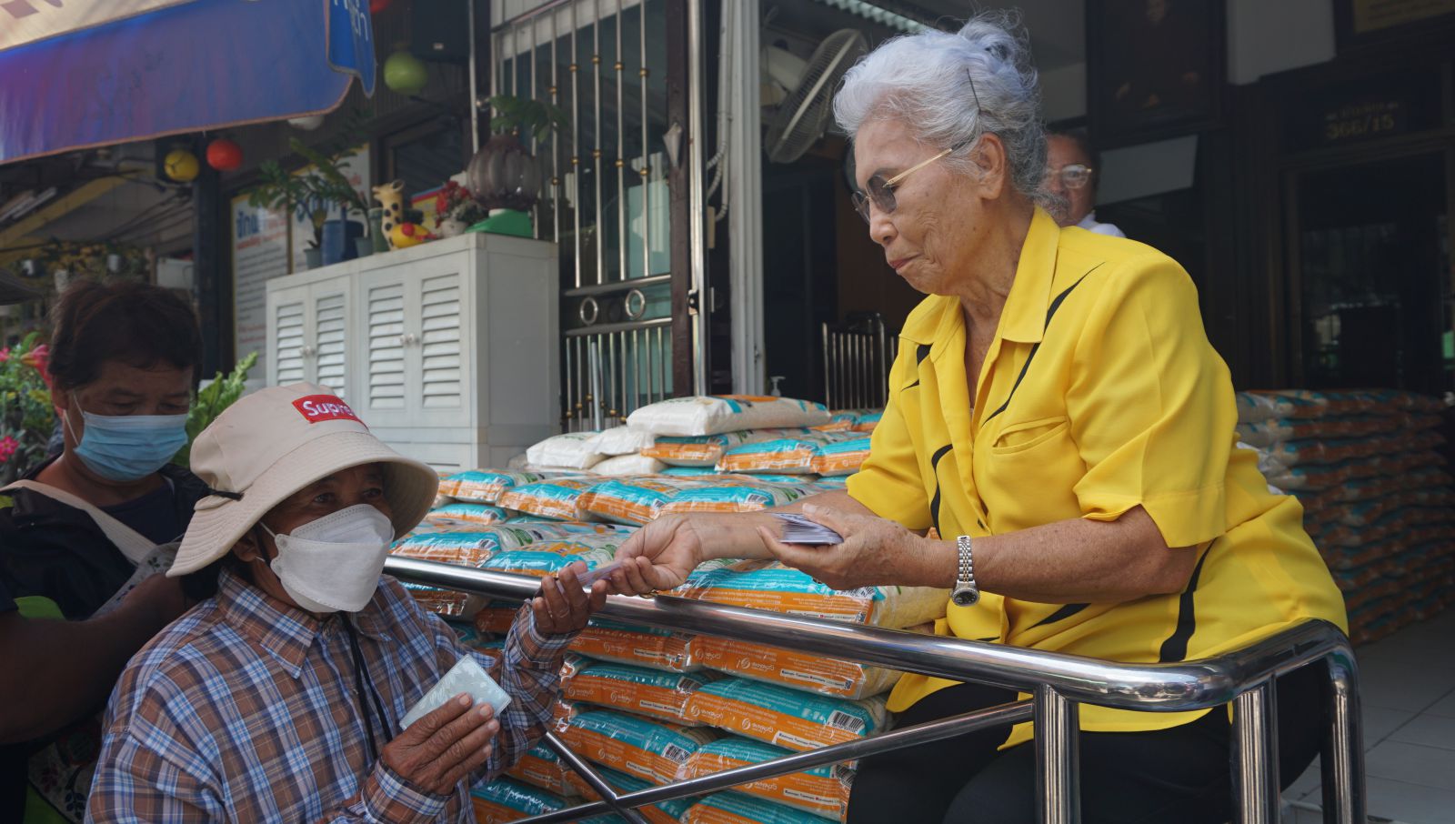 ปธ.กลุ่มแม่บ้านนาเกลือจัดแจกข้าวสารให้ พนง.เก็บขยะทำความดีถวายพ่อ