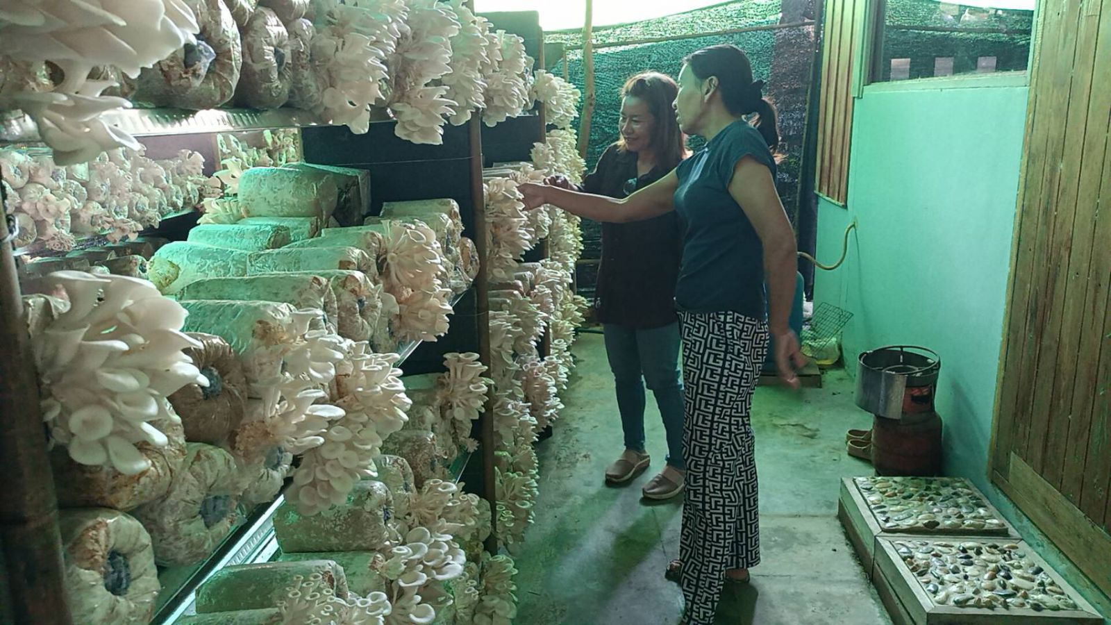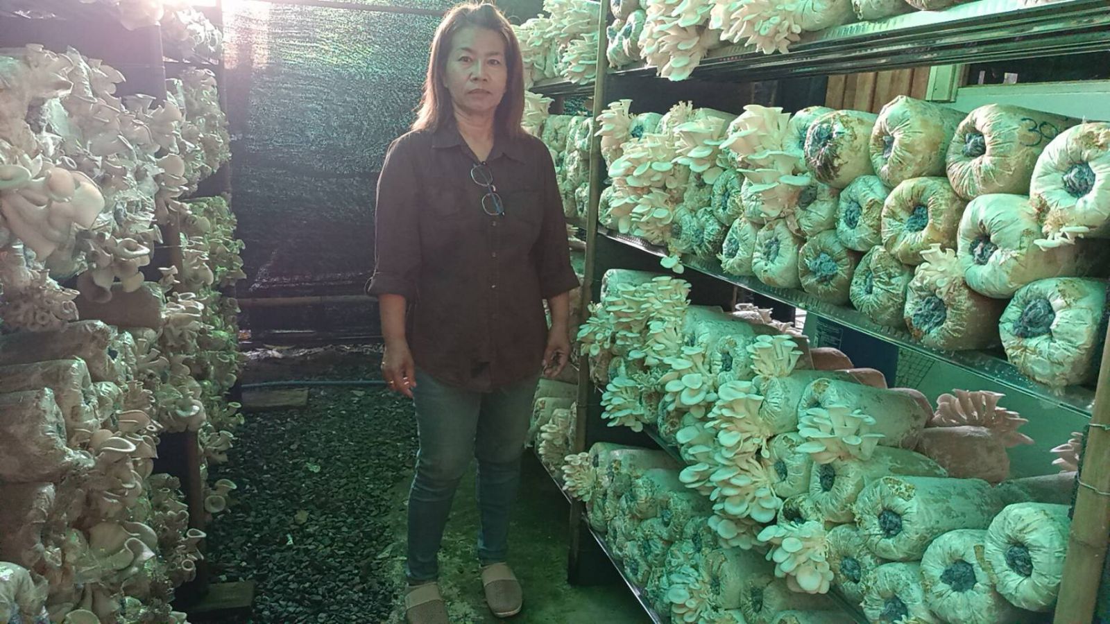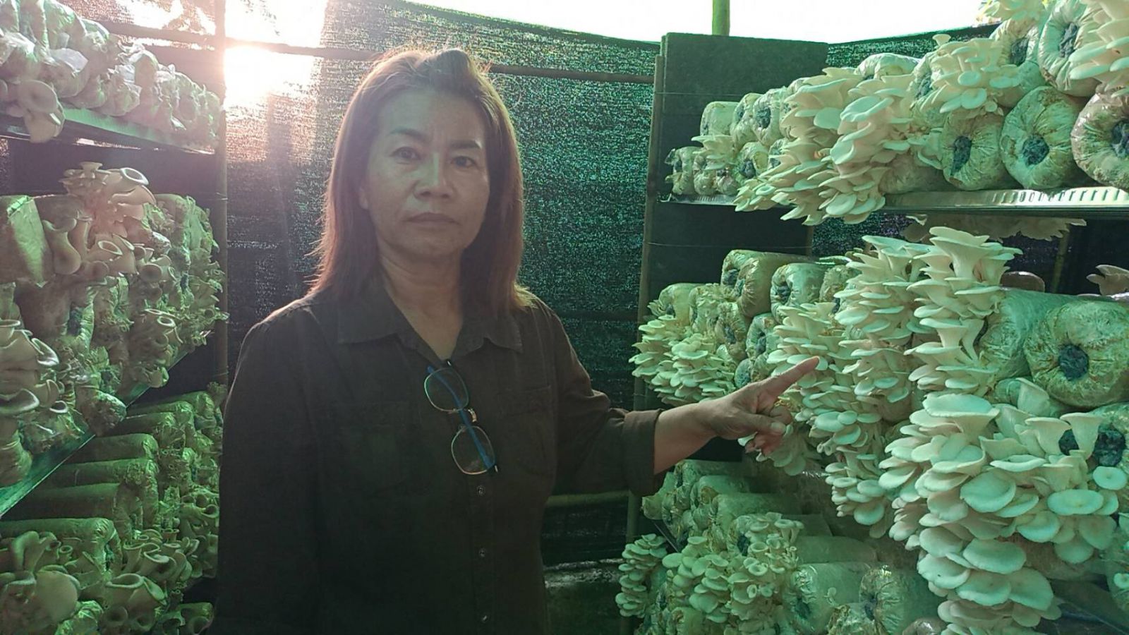 ได้ลงพื้นที่พบกับ น.ส.พัฒน์นรี โพธิแย้ม กล่าวว่า ปกติจะทำขนมไทยขายตามตลาดนัดต่าง ๆ แต่ภายหลังจากที่ศึกษาการทำเห็ดวิถีการเกษตรที่สร้างรายได้ และดูแนวโน้มด้านการตลาดดีแล้ว คนเราใช้เห็ดมาประกอบอาหารกันหลากหลาย หรือแทบทุกเมนู จึงตัดสินใจทำโรงเพาะเห็ด โดยรับซื้อก้อนเห็ดที่ทำเชื้อเห็ดสำเร็จ จากแหล่งทำก้อนเห็ดใกล้บ้าน เมื่อได้ก้อนเห็ดมาแล้วก็นำก้อนเห็ดมาวางบนชั้นที่ทำโรงเรือนเห็ดไว้ก่อนหน้านี้แล้ว