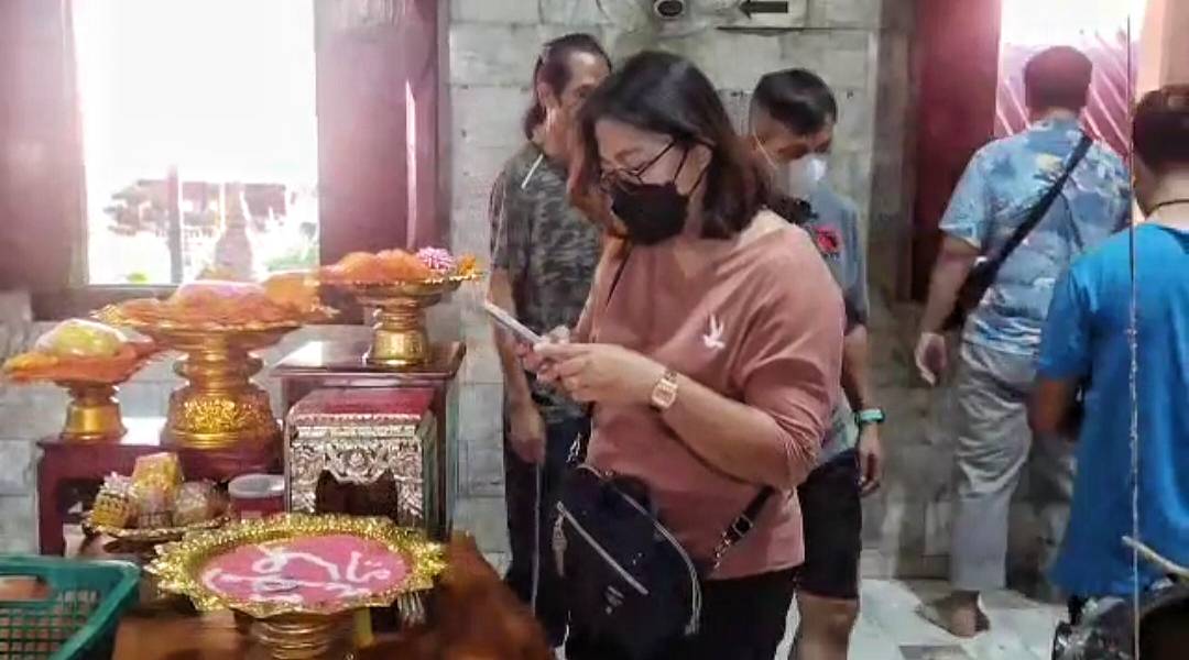 นครนายก - คึกคักนักท่องเที่ยวเข้ากราบไหว้หลวงพ่อปากแดงพร้อมส่องเลขในอ่างน้ำมนต์เพื่อนำไปเสี่ยงโชคใกล้วันหวยออก