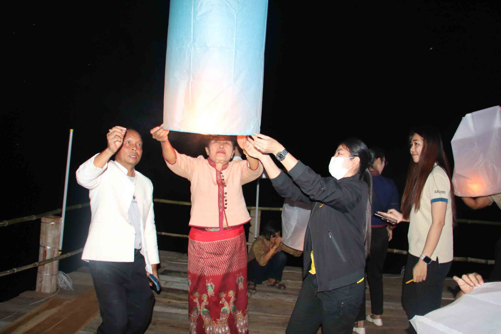 จัดปล่อยโคมไฟฉลองกองบุญมหากฐิน เปิดตัวสะพานไม้หนองหมาจอก