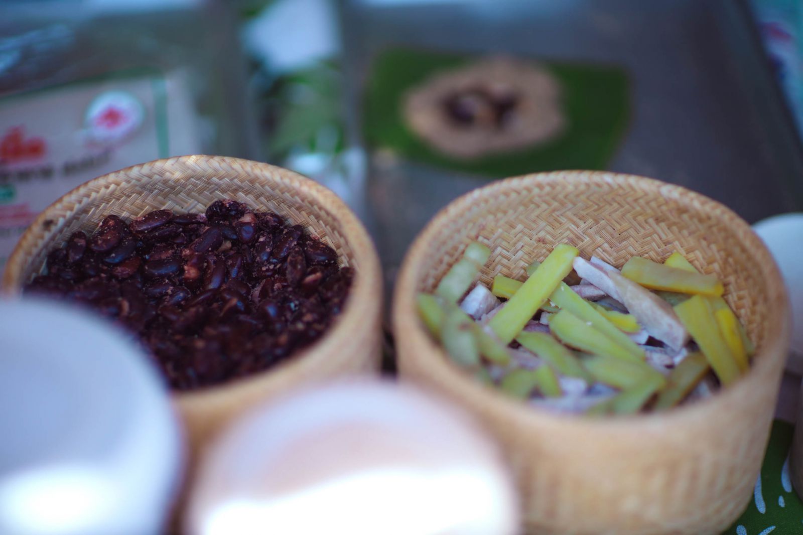 สำหรับถั่วแดงนี้เราจะคัดเมล็ดที่สมบูรณ์ เพื่อให้เมล็ดถั่วมีคุณภาพเวลาตำกับข้าวเหนียวดำ หรือข้าวกล่ำเขาวง เนื้อจะได้เข้ากัน ถ้าท่านใดชอบหวานเราก็มีน้ำผึ้งใส่ไว้ด้วย แต่จะไม่ใช่น้ำตาลเพื่อจะขาดรสชาติที่เป็นวัตถุดิบจากธรรมชาติจริงๆ โดยจำหน่ายในราคาห่อละ 10 บาท มาตลอดในช่วง 20 ปี ด้วยการใช้พื้นที่ลานจอดรถของโรงพยาบาลเขาวงด้วยความเห็นใจญาติผู้ป่วยที่ต้องการทานอาหารราคาถูกไม่แพง กินง่าย เมนูที่นำมาจำหน่ายจะมี ข้าวเหนียวจี่ใส่ไข่ ปลาร้าบอง ผัดหมี่ผู้ไท ทำขายอย่างง่ายๆ ตามวิถีคนชนบท โดยจำหน่ายในราคาห่อละ 10 บาท ไม่เคยขึ้นราคามาตลอดระยะเวลา 20 ปี ท่านใดที่สนใจอยากลองชิมสามารถได้ที่โรงพยาบาลเขาวง รับรองได้ว่าท่านจะได้ชิมรสชาติข้าวแดะงาขนานแท้ของคนผู้ไทอย่างแน่นอน