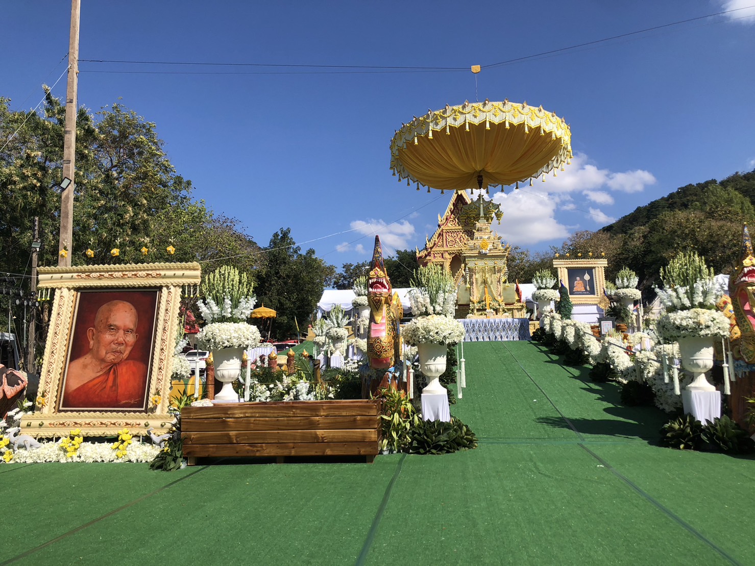 โดยในงานพระราชทานเพลิงศพ พระเทพมงคลวชิรมุนี (หา สุภโร) หรือหลวงปู่ไดโนเสาร์ ประธานคณะสงฆ์ นำโดยพระเทพสารเมธี เจ้าอาวาสวัดประชานิยม ที่ปรึกษาเจ้าคณะภาค 9 พระญาณรักขิต เจ้าคณะจังหวัดกาฬสินธุ์ (ธ) พระอาจารย์ณรงค์ ชยมงฺคโล เจ้าอาวาสวัดพุทธนิมิต (ภูค่าว) ดำเนินงานเตรียมและสถานที่ โดยได้เตรียมท่อนไม้จิก กว่า 20,000 ชิ้น ให้ศิษยานุศิษย์ได้นำไปวางบนจิตกาธาน