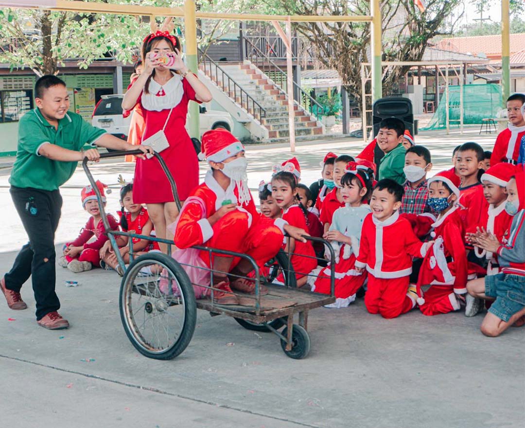 โรงเรียนชลนายกสงเคราะห์จัดคริสต์มาส ซานตาคลอสนั่งรถเข็นมาแจกของขวัญ