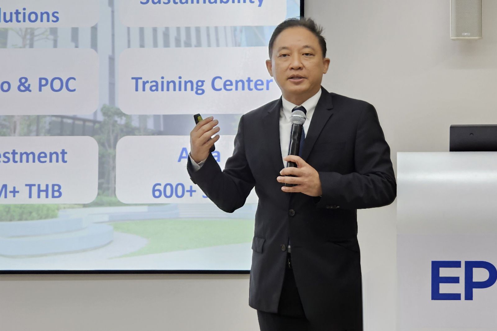 ด้านนายยรรยง มุนีมงคลทร ผู้อำนวยการบริหาร บริษัท เอปสัน (ประเทศไทย) จำกัด กล่าวว่า เอปสันมองเห็นถึงศักยภาพและการเติบโตของสินค้าในกลุ่มธุรกิจ B2B ในทุกตลาดของภูมิภาคเอเชียตะวันออกเฉียงใต้ และได้วางกลยุทธ์เพื่อรุกตลาดนี้โดยเฉพาะ ตั้งแต่ด้านโครงสร้างของธุรกิจ การพัฒนาทีมงาน ไปถึงการพัฒนาและการให้การสนับสนุนตัวแทนจำหน่าย การลงทุนสร้างโซลูชั่น เซ็นเตอร์ในทุกประเทศก็เป็นหนึ่งในกลยุทธ์สำคัญ เพื่อเป็นทัชพอยต์สำหรับลูกค้า B2B ซึ่งโซลูชั่น เซ็นเตอร์แห่งใหม่ที่ประเทศไทยนี้ใช้งบประมาณกว่า 30 ล้านบาท