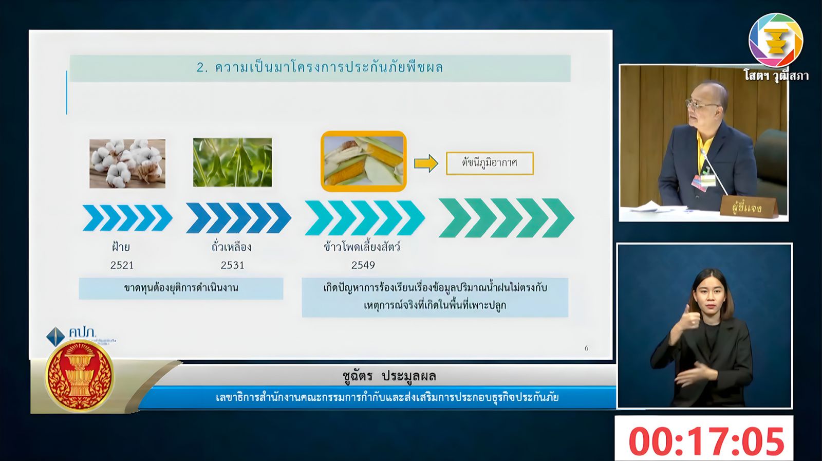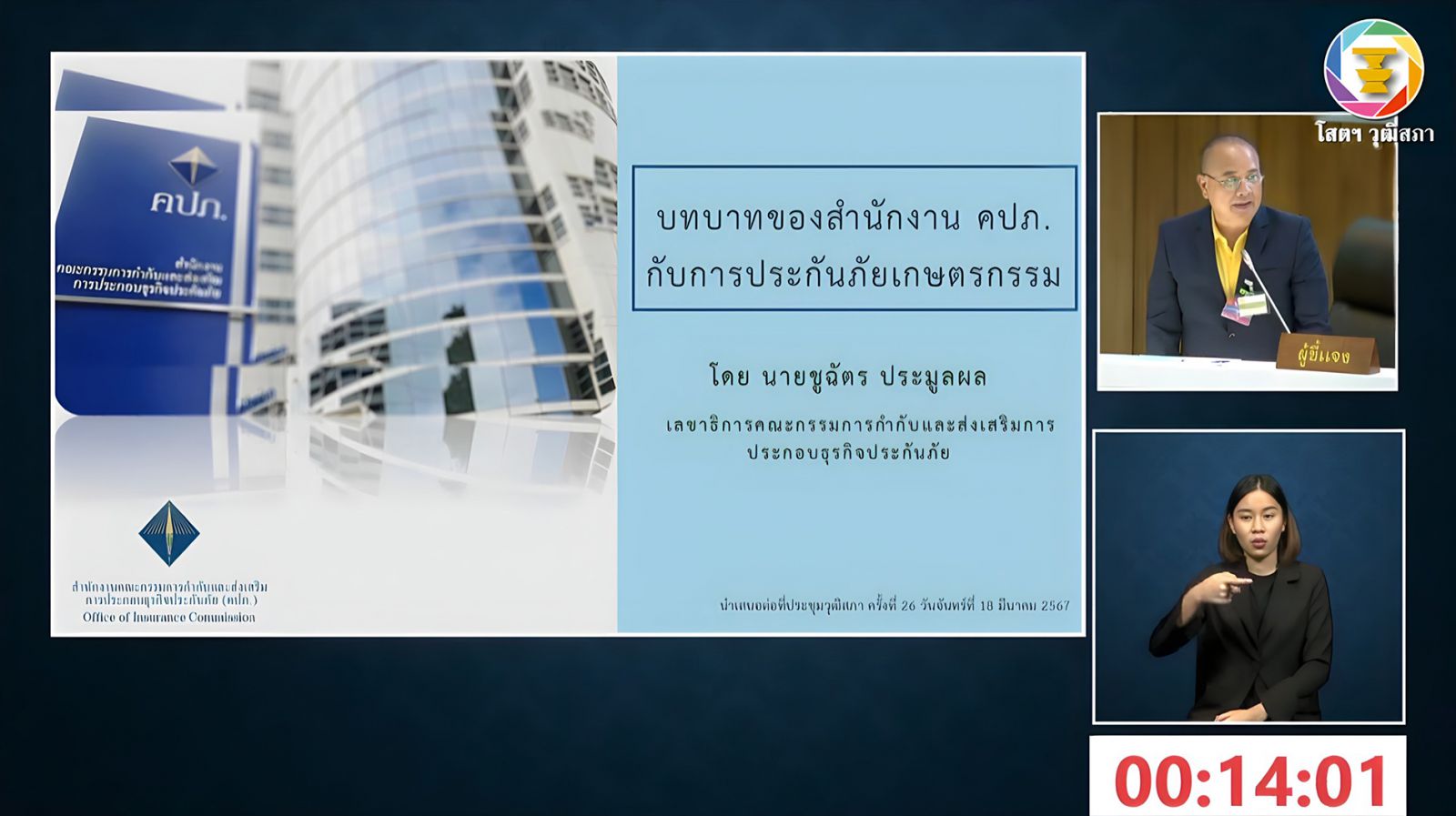 เลขาฯคปภ.นำเสนอบทบาทสำนักงานกับ การประกันภัยเกษตรกรรมต่อวุฒิสภา