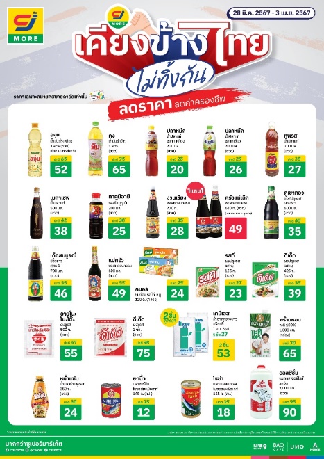 ตั้งแต่วันที่ 28 มีนาคม 2567 – 3 เมษายน 2567 พบกับสินค้าลดราคาสุดพิเศษ อาทิน้ำมันถั่วเหลืองตราองุ่น ขนาด 1 ลิตร ในราคา 52 บาท จากปกติ 65 บาทข้าวหอมมะลิคัดพิเศษตราหงษ์ทอง 5 กก. ในราคา 209 บาท จากปกติ 249 บาท ไข่ไก่ตรายกนิ้ว แพ็ค 30 ฟอง ในราคา 117 บาท จากราคาปกติ 119 บาท ซีอิ้วขาวสูตร 1 ตราเด็กสมบูรณ์ ในราคา 46 บาท จากปกติ 55 บาท ผงปรุงรสตราดีเด็ด รสหมู ในราคา 39 บาท จากปกติ 55 บาทและอีกมากมายได้แล้ว ที่ซีเจ มอร์ ทุกสาขาทั่วประเทศไทย
