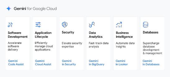 - Gemini Cloud Assist: ให้ความช่วยเหลือ AI ตลอดวงจรการใช้งานแอปพลิเคชันของคุณ ทำให้ง่ายต่อการออกแบบ รักษาความปลอดภัย ดำเนินการ แก้ไขปัญหา และเพิ่มประสิทธิภาพและต้นทุนของแอปพลิเคชัน