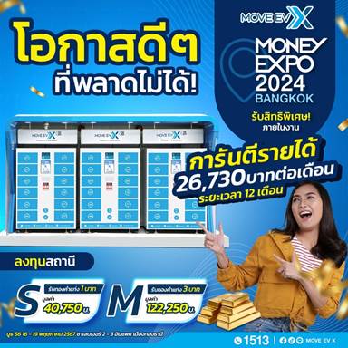 กรุงเทพฯ-MOVE EV X (มูฟ-อี-วี-เอกซ์) ธุรกิจขายและให้บริการสถานีเปลี่ยนแบตเตอรี่สำหรับรถมอเตอร์ไซค์ไฟฟ้า จัดแสดงนวัตกรรมสะอาดหรือสถานีเปลี่ยนแบตเตอรี่ในงาน Money Expo 2024 เพื่อให้ผู้ประกอบการได้ชมการสาธิต และทดลองใช้งานสถานีเปลี่ยนแบตเตอรี่ของ MOVE EV X โดยผู้ประกอบการสามารถเริ่มต้นธุรกิจกับ MOVE EV X ในรูปแบบ S วงเงินการลงทุนเริ่มต้น 679,000 บาท และรูปแบบ M วงเงินการลงทุนเริ่มต้น 1,969,000 บาท พิเศษลูกค้าที่สั่งจองและมัดจำภายในงาน สามารถเลือกการการันตีรายได้ 26,730 บาทต่อเดือน (ระยะเวลา 12 เดือนในพื้นที่ Hot Zone) หรือ รับทองคำแท่งน้ำหนัก 1 - 3 บาท (ขึ้นอยู่กับโมเดลธุรกิจที่ลงทุน) พบกันที่งาน Money Expo 2024 บูธ S6 ชาเลนเจอร์ 2 - 3 อิมแพค เมืองทองธานี วันที่ 16 – 19 พฤษภาคมนี้