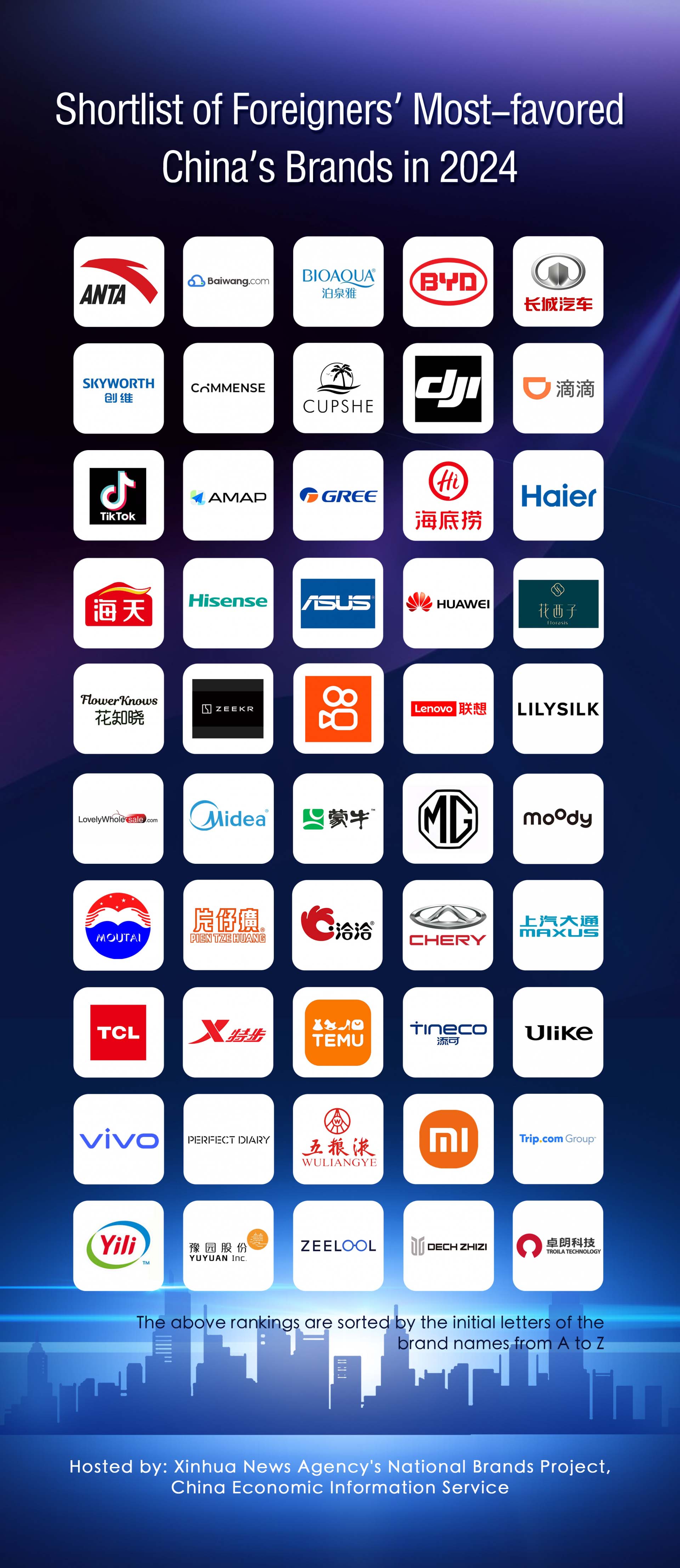 เมื่อวันที่ 10 พ.ค. หัวเหวย (Huawei) ดีเจไอ (DJI) ติ๊กต็อก (TikTok) อู่เหลียงเย่ (Wuliangye) เพี่ยนจื่อหวง (Pien Tze Huang) ไห่เถียน (Haitian) ชาชา (ChaCha) เหมิ่งหนิว (Mengniu) ซีกเกอร์ (Zeekr) เอ็มจี โดยเอสเอไอซี มอเตอร์ (SAIC Motor) บีวายดี (BYD) ไฮเออร์ (Haier) ไคว่โส่ว (Kuaishou) ตีตี (Didi) และยี่ห้ออื่นๆ ได้มาปรากฏตัว ณ นครเซี่ยงไฮ้ในฐานะแบรนด์ยอดนิยมสูงสุดของปีสำหรับผู้บริโภคต่างชาติ ด้วยคุณภาพที่ได้รับการยกย่องในทั่วโลก