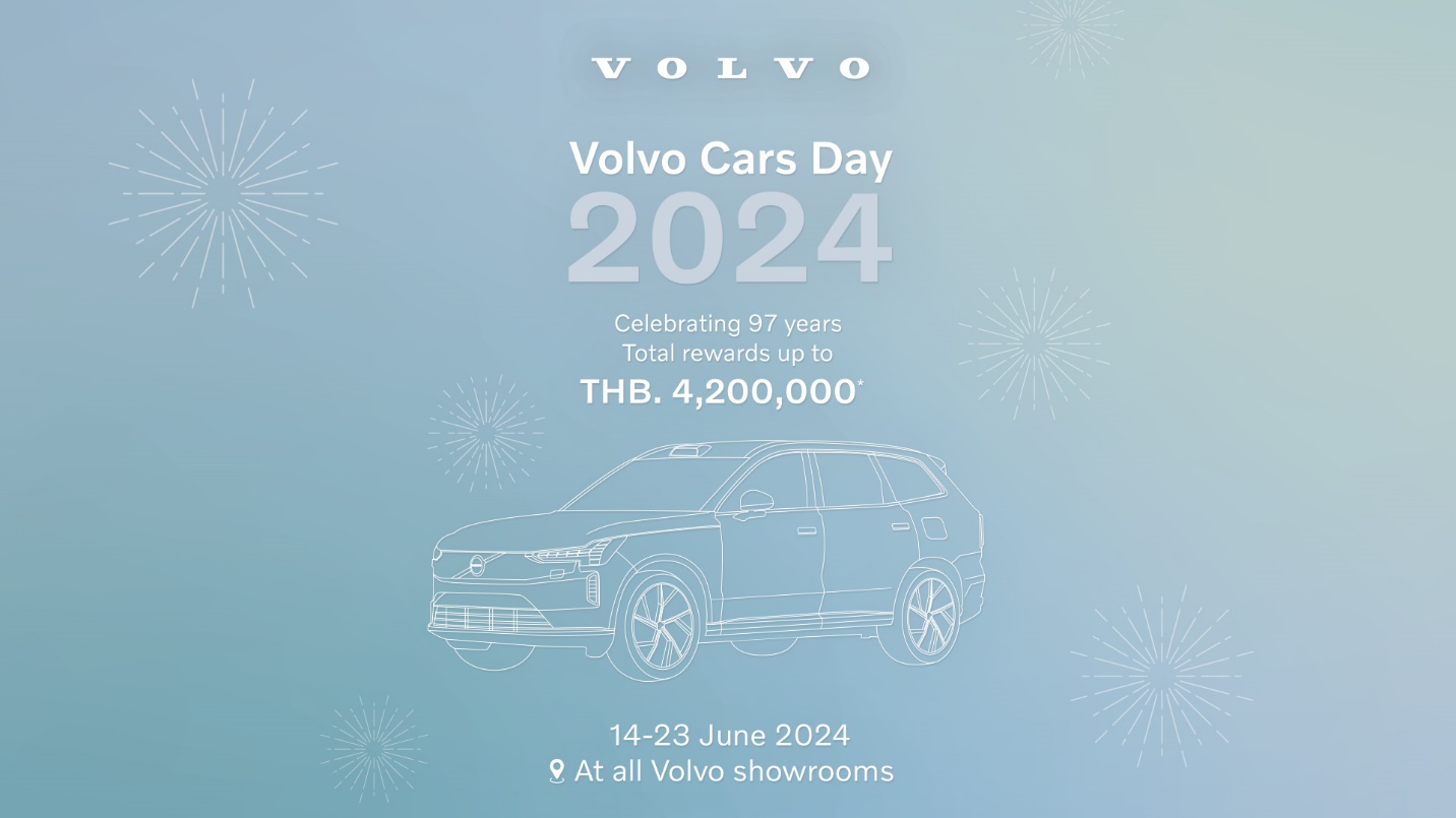 กรุงเทพฯ-วอลโว่ คาร์ ประเทศไทย ฉลองครบรอบ 97 ปีแบรนด์ วอลโว่ (VOLVO) จัดกิจกรรม1 Volvo Cars Day มอบสิทธิประโยชน์สุดเอ็กซ์คลูซีฟแก่ลูกค้าที่สนใจเป็นเจ้าของรถวอลโว่ทั้งในรุ่น Pure Electric และ Plug-in Hybrid โดยกิจกรรมจัดขึ้นระหว่างวันที่ 14 – 23 มิถุนายน พ.ศ. 2567 โดยผู้สนใจสามารถเลือกรับข้อเสนอพิเศษ มูลค่ารวมสูงสุดถึง 500,000 บาท และสิทธิลุ้นรับ iPhone 15 Pro Max 256 GB จำนวน 97 เครื่อง มูลค่ารวมกว่า 4,200,000 บาท ณ โชว์รูมผู้จัดจำหน่ายรถวอลโว่ทั่วประเทศ
