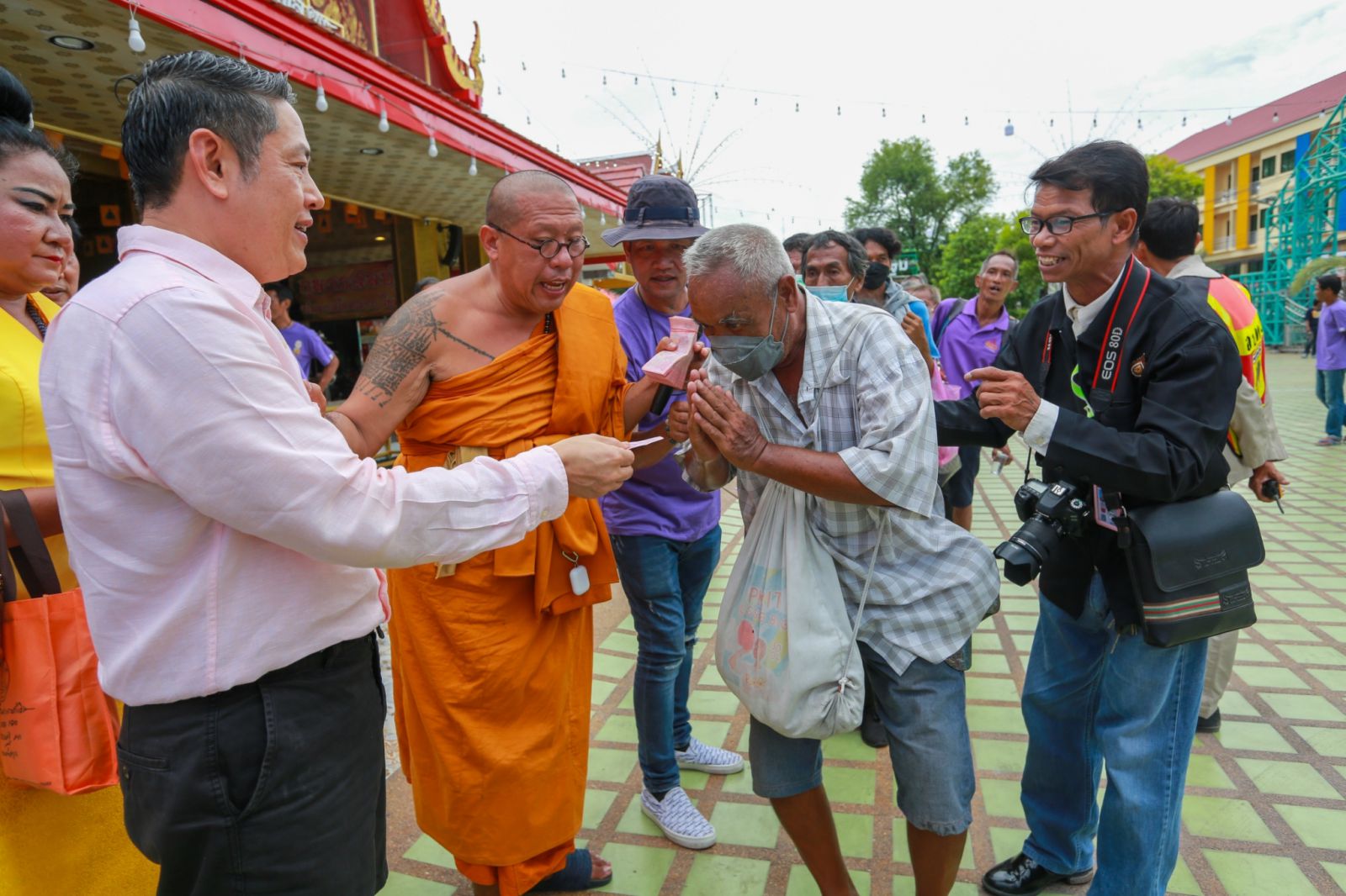 นครปฐม-ขอหวย สองเลขหางประทัด งานถวายมุทิตาจิตสักการะ หลวงพี่น้ำฝน อายุ 52 ปี หลังกระแสเลขดัง กุมารสมบัติ ทำคอหวยได้โชคสามตัวตรงงวดที่ผ่านมา ขณะที่พี่น้ำฝนจัดแจกทานเป็นอาหารเช้าและอาหารกลางวัน รวมถึงบี Says แจกเงินคนจน ทำให้บรรยากาศบรรยากาศในวัดไผ่ล้อมคึกคักเป็นพิเศษ