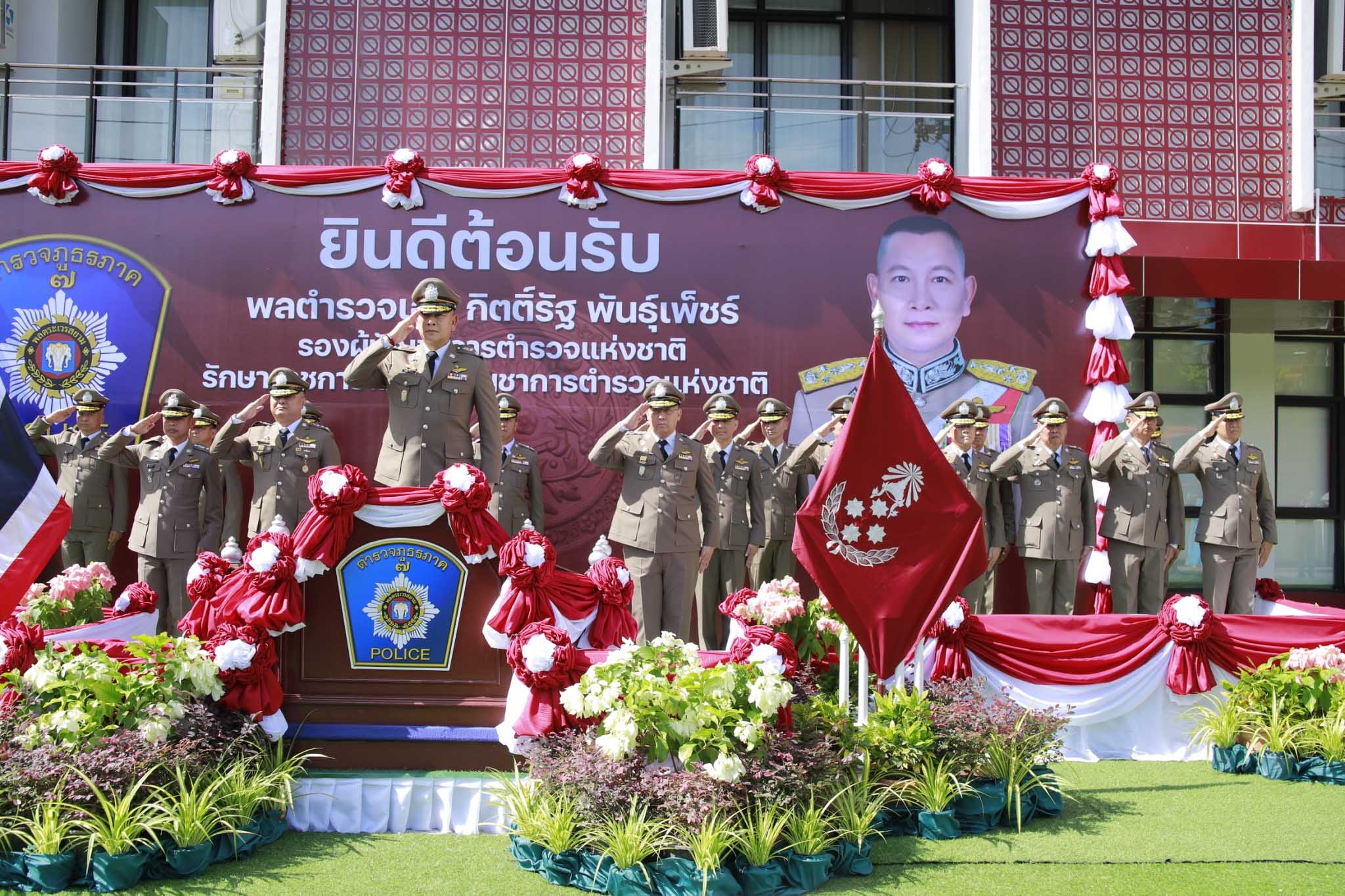 โดยมี พลตำรวจโท กรไชย คล้ายคลึง ผู้ช่วยผู้บัญชาการตำรวจแห่งชาติ พลตำรวจโท นัยวัฒน์ ผะเดิมชิต ผู้บัญชาการตำรวจภูธรภาค 7 พลตำรวจโท สำเริง สวนทอง ผู้ทรงคุณวุฒิพิเศษ สำนักงานตำรวจแห่งชาติ พลตำรวจตรี อาทิชา เปาอินทร์ รองผู้บัญชาการตำรวจภูธรภาค 7 พลตำรวจตรี อุทัย กวินเดชาธร รองผู้บัญชาการตำรวจภูธรภาค 7 พลตำรวจตรี ชมชวิณ ปุระธนานนท์ รองผู้บัญชาการตำรวจภูธรภาค 7 พลตำรวจตรี วันชัย ธารณธรรม รองผู้บัญชาการตำรวจภูธรภาค 7 พลตำรวจตรี พิพัฒน์ ชุ่มมณีกูล รองผู้บัญชาการตำรวจภูธรภาค 7 พลตำรวจตรี ปิติ นฤขัตรพิชัย รองผู้บัญชาการตำรวจภูธรภาค 7 พลตำรวจตรี ประสพชัย มัตสยะวนิชกูล ผู้บังคับการสืบสวนสอบสวนตำรวจภูธรภาค 7 พลตำรวจตรี ปริดา อิ่มเจริญ ผู้บังคับการศูนย์ฝึกอบรมตำรวจภูธรภาค 7 พลตำรวจตรี วัชรินทร์ ประสพดี ผู้บังคับการตำรวจภูธรจังหวัดสุพรรณบุรี พลตำรวจตรี จำลอง งามเนตร ผู้บังคับการตำรวจภูธรจังหวัดประจวบครีขันธ์ พลตำรวจตรี อนุรักษ์ พรพุทธศรี ผู้บังคับการ กองกฎหมายและคดีตำรวจภูธรภาค 7 พลตำรวจตรี สมภพ คูหาวิชานันท์ ผู้บังคับการตำรวจภูธรจังหวัดสมุทรสงคราม พลตำรวจตรี นครินทร์ สุคนธวิท ผู้บังคับการตำรวจภูธรจังหวัดกาญจนบุรี พลตำรวจตรี วชิรพงษ์ อมราพิทักษ์ ผู้บังคับการตำรวจภูธรจังหวัด ราชบุรี พลตำรวจตรี สุวรรณ์ เชี่ยวนาวินขวัช ผู้บังคับการตำรวจภูธรจังหวัดนครปฐม พลตำรวจตรี สุระพรรณ นาทวรทัต ผู้บังคับการตำรวจภูธรจังหวัดสมุทรสาคร พลตำรวจตรี กิดติ สุขสมภักดิ์ ผู้บังคับการตำรวจภูธรจังหวัดเพชรบุรี พลตำรวจตรี พศวีร์ เรืองภู่ ผู้บังคับการอำนวยการตำรวจภูธรภาค 7 และรอง ผู้บังคับการตำรวจภูธร ทั้ง 8 จังหวัด ผู้กำกับการ หัวหน้าสถานีทั้ง 104 สถานี ในสังกัดตำรวจภูธรภาค.7 และเจ้าหน้าที่ที่เกี่ยวข้องให้การตอนรับ เข้าร่วมพิธีเนื่องในวันคล้ายวันสถาปนาตำรวจภูธรภาค 7 ครบรอบปีที่ 78 ประจำปี 2567