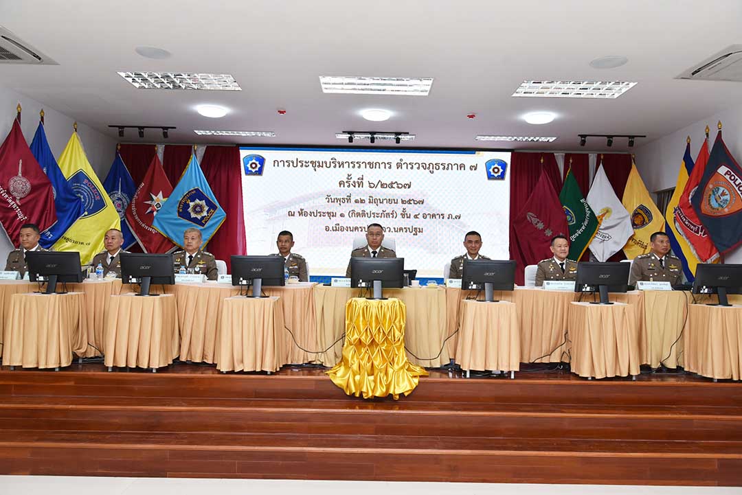 โดยมี พล.ต.ท.สำเริง สวนทอง ผู้ทรงคุณวุฒิพิเศษ ตร.พล.ต.ต.อาทิชา เปาอินทร์ รอง ผบช.ภ.7 พล.ต.ต.อุทัย กวินเดชาธร รอง ผบช.ภ.7 พล.ต.ต.ชมชวิณ ปุระธนานนท์ รอง ผบช.ภ.7พล.ต.ต.วันชัย ธารณธรรม รอง ผบช.ภ.7 พล.ต.ต.พิพัฒน์ ชุ่มมณีกูล รอง ผบช.ภ.7 พล.ต.ต.ปิติ นฤขัตรพิชัย รอง ผบช.ภ.7 พล.ต.ต.ประสพชัย มัตสยะวนิชกูล ผบก.สส.ภ.7 พล.ต.ต.ปริดา อิ่มเจริญ ผบก.ศฝร.ภ.7 ผบก.ภ.จว.และรอง ผบก.ภ.จว.ทั้ง 8 จังหวัด ผกก.หัวหน้าสถานีทั้ง 104 สถานี ในสังกัดตำรวจภูธรภาค.7 และเจ้าหน้าที่ที่เกี่ยวข้องเข้าร่วมการประชุม ณ.ห้องประชุม 1 (กิตติประภัสร์) ชั้น 4 อาคารตำรวจภูธรภาค 7 ถนน ขวาพระ ตำบลพระปฐมเจดีย์ อำเภอ เมืองนครปฐม จังหวัดนครปฐม