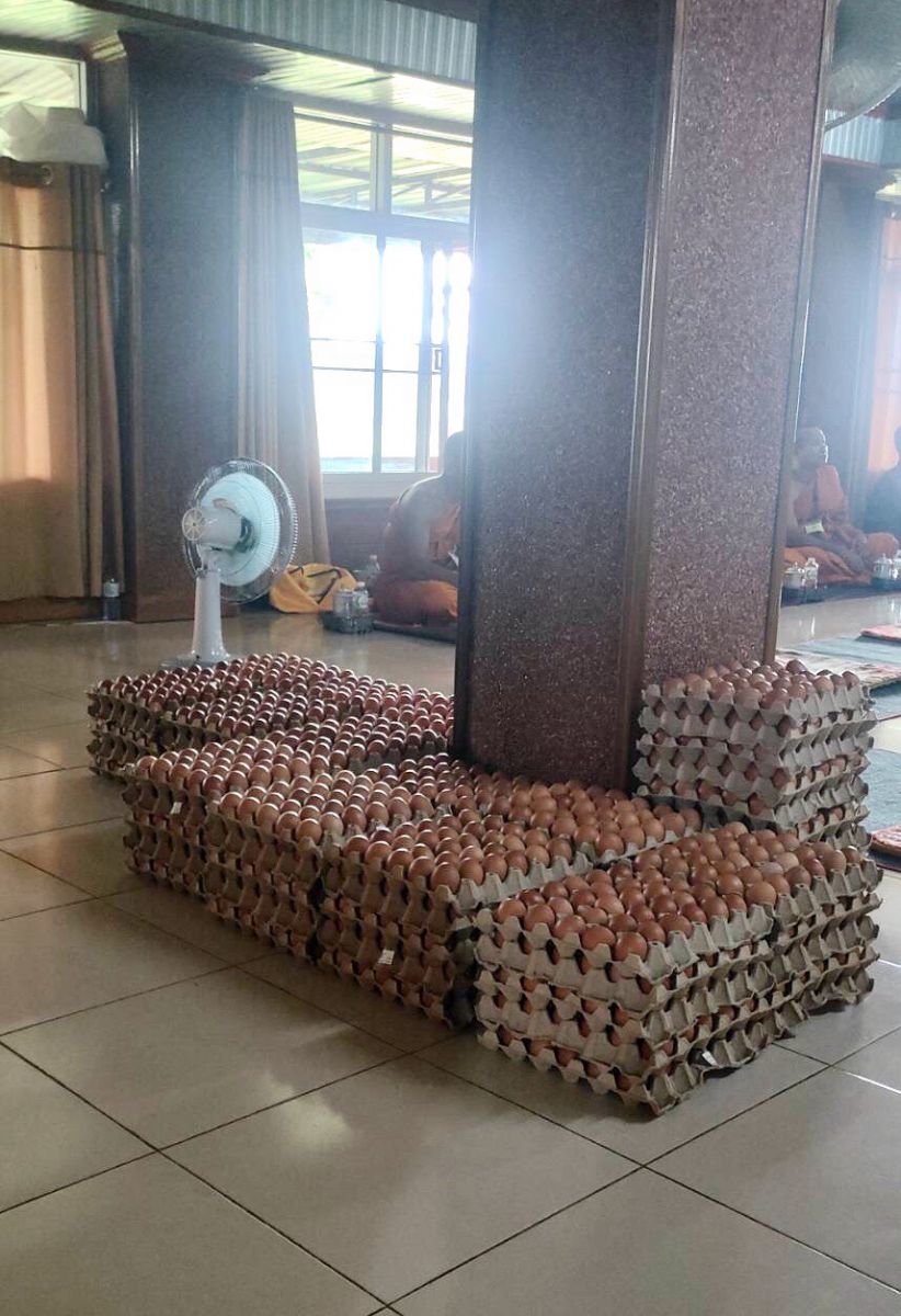 ทั้งนี้ได้รับเมตตาจากพระญาณรักขิต (แผน โสภโณ) เจ้าคณะจังหวัดกาฬสินธุ์ (ธ) วัดโสภณพัฒนาราม (ภูปูนในฝัน) (ธ) อ.สมเด็จ, พระอาจารย์ชาญยุทธ ถิรญาโณ วัดป่าบ้านบอน (ธ) อ.สมเด็จ รวมทั้งคณะศรัทธาวัดบ้านหนองโจด เทพมงคลวชิรมุนีอนุสรณ์ (หลวงปู่หา สุภโร) อ.ยางตลาด แลชะภาคเอกชน ในการแบ่งปัน แจกจ่ายอาหาร มะละกอ 72 ถุง (ถุงละ 10 กก.) ไข่ไก่ 72 แผงข้าวสาร 72 ถุง (ถุงละ 5 กก.) น้ำปลา และน้ำดื่ม 72 แพ็ค และโรงทานบริการอาหาร น้ำดื่ม ให้กับผู้มาร่วมกิจกรรมด้วย