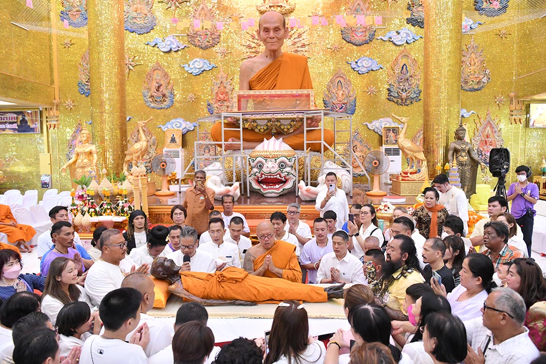 คลื่นลูกศิษย์แน่นวัดร่วมพิธีหลวงพี่น้ำฝน เปลี่ยนสังขารหลวงพ่อพูลคอหวยฮือฮา