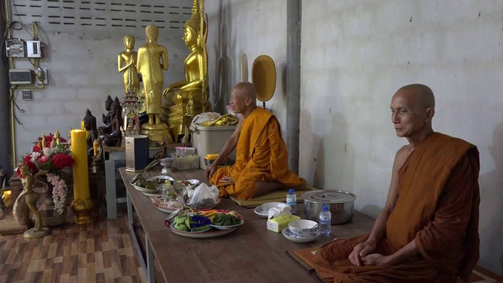 ด้านญาตโยมที่เดินทางมาจาก กรุงเทพมหานคร วันนี้ได้เดินทางมาทำบุญ นำอาหารหวานคาวมาถายพระ ถวายเทียน และหลอดไฟ เพื่อให้พระสงฆ์ได้ใช้ ในกิจของสงฆ์ ในการเข้าพรรษา3เดือนต่อไป