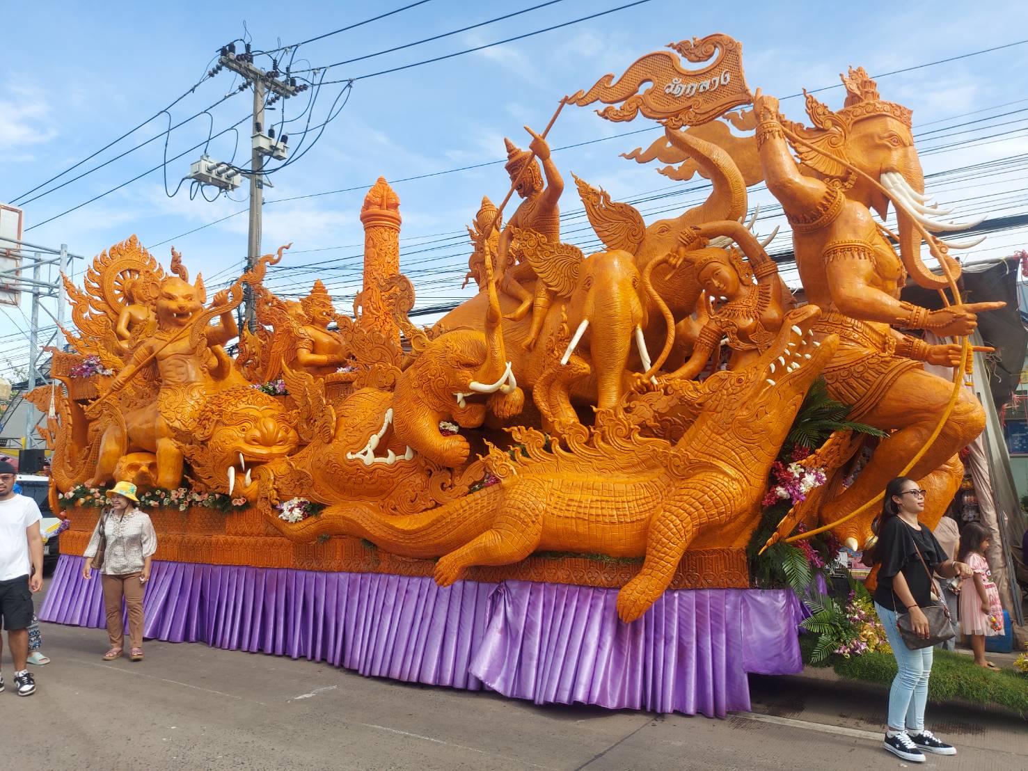บุรีรัมย์-ประชาชนและนักท่องเที่ยว ทั้งชาวไทยและต่างชาติจำนวนมาก ร่วมชมสัมผัสความวิจิตรสวยงาม ของขบวนแห่เทียนพรรษา ที่บรรดาช่างฝีมือท้องถิ่นจากทั้ง 6 คุ้มวัด ได้แกะสลักรังสรรค์ต้นเทียนพรรษา ด้วยกาประยุกต์ลวดลายไทยกับลายขอม มาอวดโฉมให้ได้ชม และขบวนแห่เกี่ยวประเพณีอาหารพื้นบ้าน และการแสดงเชื่อประเพณีเก่าแก่ การรำผีแม่มด ในแห่เทียนพรรษา อ.ประโคนชัย จ.บุรีรัมย์ ประจำปี 2567 ‘หลอมเทียนรวมใจ ประโคนชัยเทียนศิลป์ เทิดพระภูมินทร์ มหาวชิราลงกรณ’