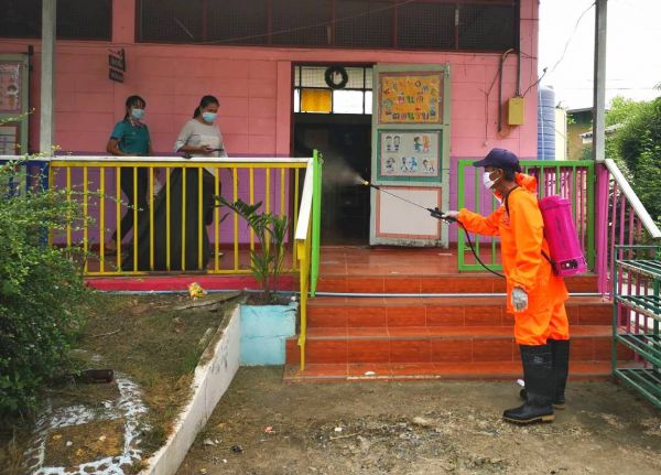 ลพบุรี-เทศบาลตำบลเขาพระยาเดินธงเร่งฉีดยาฆ่าเชื้อไวรัสโคโรน่า 2019 สถานศึกษาเพื่อการเปิดภาคเรียนให้ นักเรียน ปลอดภัย จากโรคไวรัส covid-19