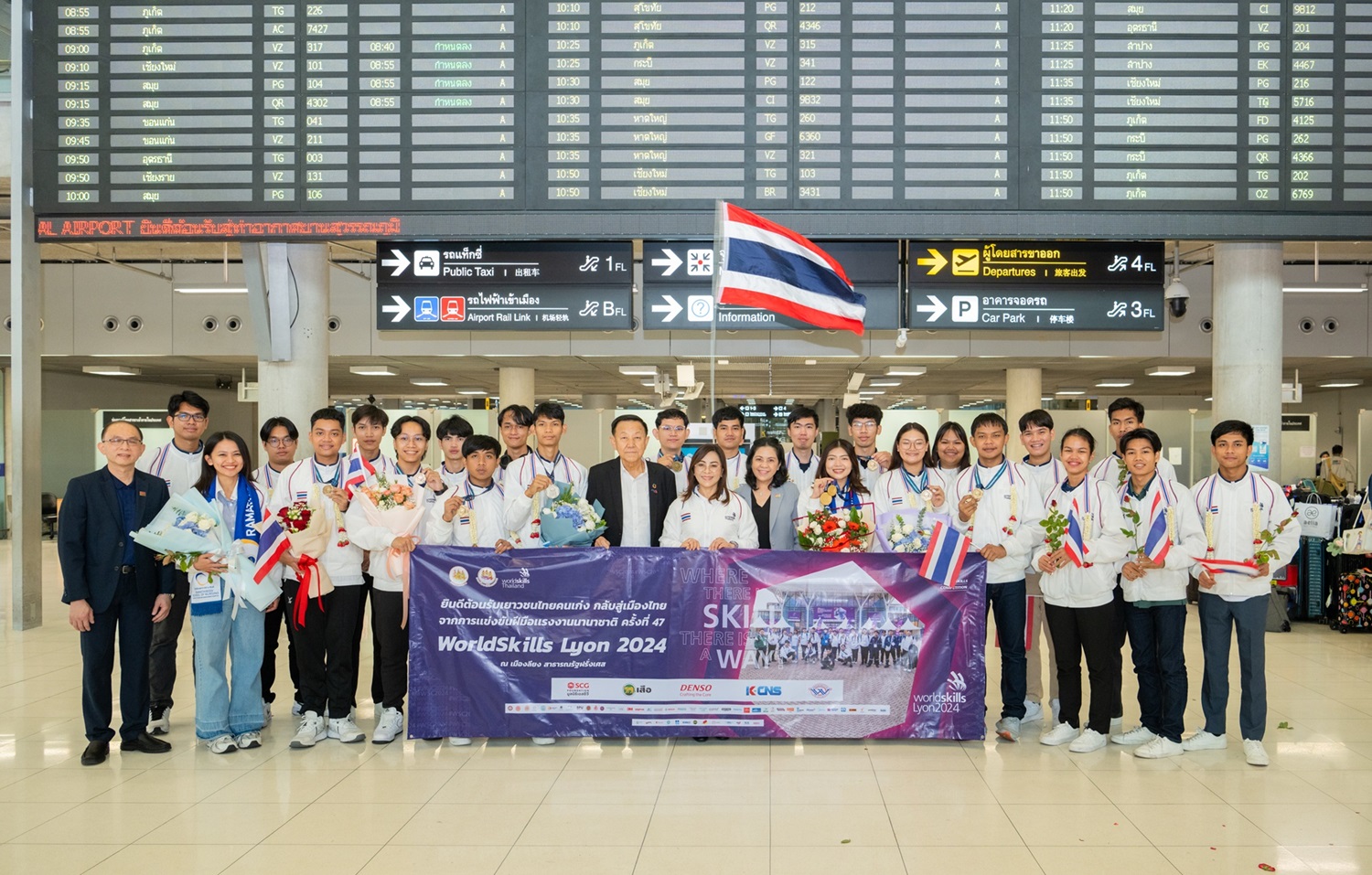 กรุงเทพฯ-กรมพัฒนาฝีมือแรงงาน พร้อมด้วย มูลนิธิเอสซีจีต้อนรับเยาวชนทักษะฝีมืออันดับหนึ่งของโลกเดินทางกลับบ้าน
