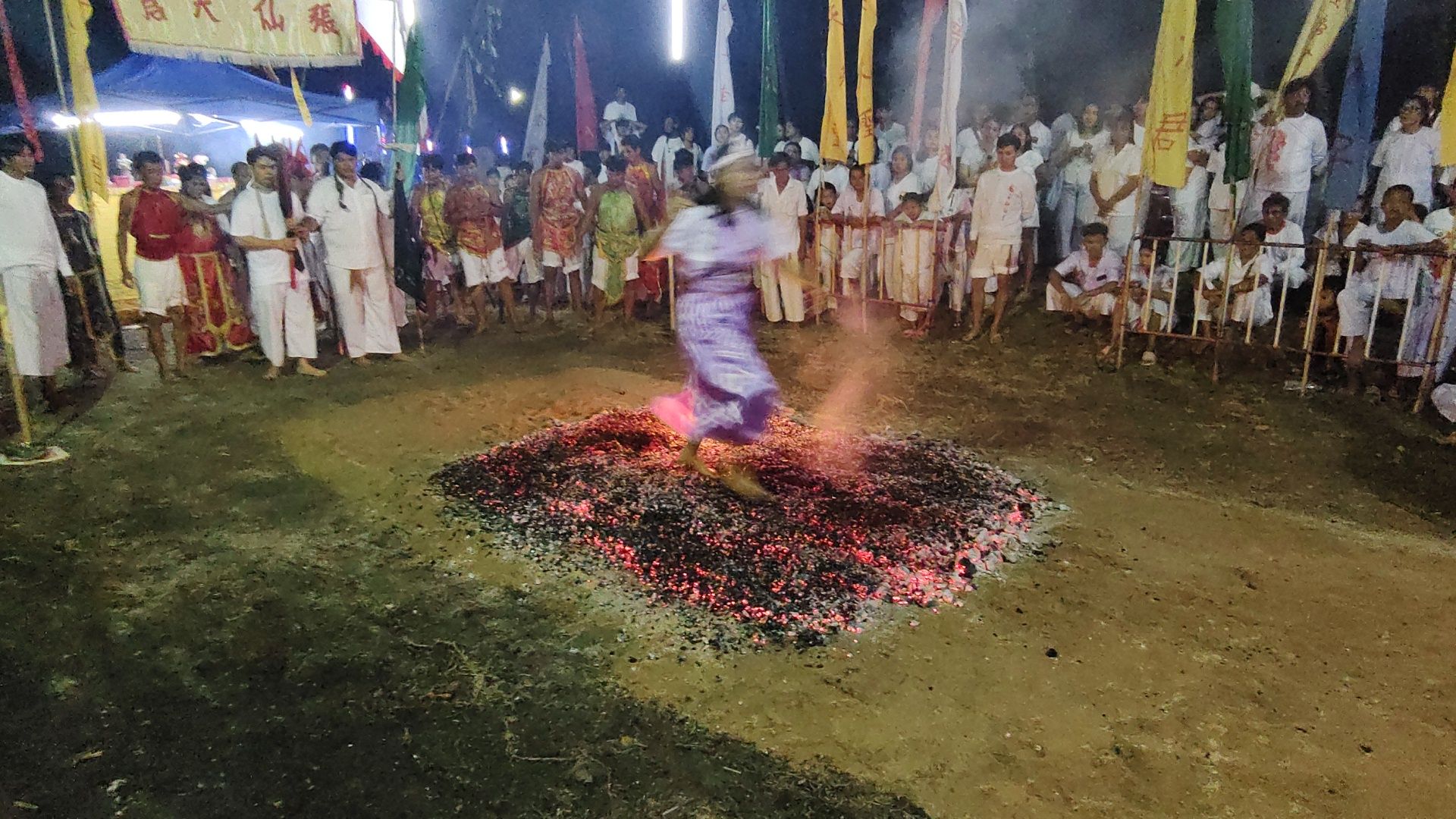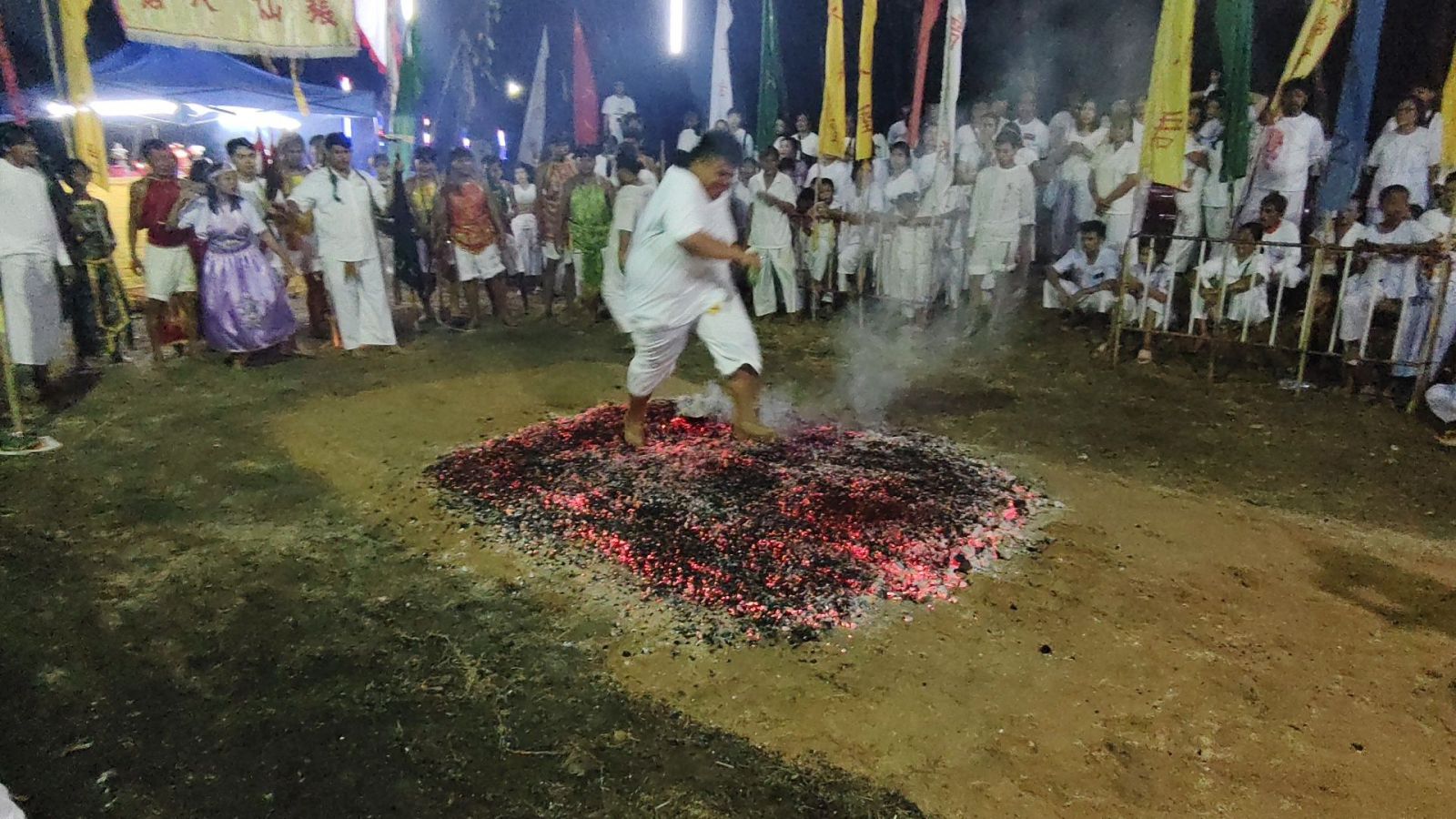 ม้าทรงชายหญิงโชว์อิทธิฤทธิ์ลุยกองไฟ ด้วยเท้าเปล่าประเพณีถือศีลกินเจพังงา