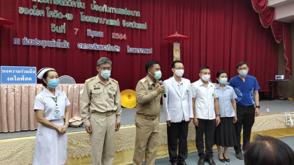 ทางด้านนายสมหวัง พ่วงบางโพ ผู้ว่าราชการจังหวัดแพร่ กล่าวว่า ทางจังหวัดแพร่มีความพร้อม ตามกลุ่มเป้าหมายที่นัดไว้ จังหวัดแพร่รณรงค์ให้ฉีด 70%ของประชากรจังหวัดแพร่ ภายในสิ้นปีนี้ ทางจังหวัดมีการรณรงค์ทุกรูปแบบ ถึงแม้จะมีอุปสรรค ข่าวสารต่างๆ ทางแพทย์ยังคงมุ่งมั่นให้ประชาชนจังหวัดแพร่ได้รับการฉีดวัคซีน 70% วันนี้ทั่วประเทศมีการ Kick Off ในรอบประชาชนสำหรับผู้ที่มีอายุ 60 ปีขึ้นไป และกลุ่ม 7 โรค ฉีดแล้วทำให้เรามีภูมิคุ้มกัน เป็นการสู้รบอีกแบบหนึ่งที่ต้องร่วมมือร่วมใจกันทั่วประเทศ เพราะทั่วโลกก็ต้องฉีดวัคซีน สำหรับจังหวัดแพร่นั้นได้รับวัคซีนเพียงพอภายใต้สถานการณ์ที่รัฐบาลจัดมาให้ทั่วถึง จะทยอยมาตามดีมาน ซับพลาย จนถึงสิ้นปี จังหวัดแพร่กลุ่มผู้สูงอายุ 60 ปีขึ้นไป และกลุ่ม 7 โรค ลงทะเบียนมาแล้ว ประมาณ 60% เมื่อมีคนฉีดมากขึ้นเรื่อยๆๆ จะเป็นการสร้างความมั่นใจให้กับผู้ที่ยังไม่มั่นใจในการฉีด