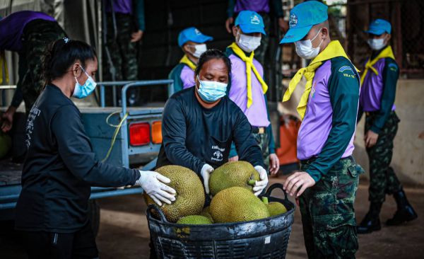 ลพบุรี-กรมทหารปืนใหญ่ที่ 1 รักษาพระองค์ ค่ายภูมิพลฯ จัดกำลังพลจิตอาสาฯ รับซื้อผลผลิตทางการเกษตร ขนุนสุกจากสวน กว่า1.2 ตัน (1,200 กิโลกรัม) เพื่อช่วยเหลือเกษตรกรที่ได้รับผลกระทบในช่วงการระบาดของไวรัส COVID-19 ตามโครงการ “ทหารอิ่มท้อง พี่น้องเกษตรกรอิ่มใจ” ของกองทัพบก