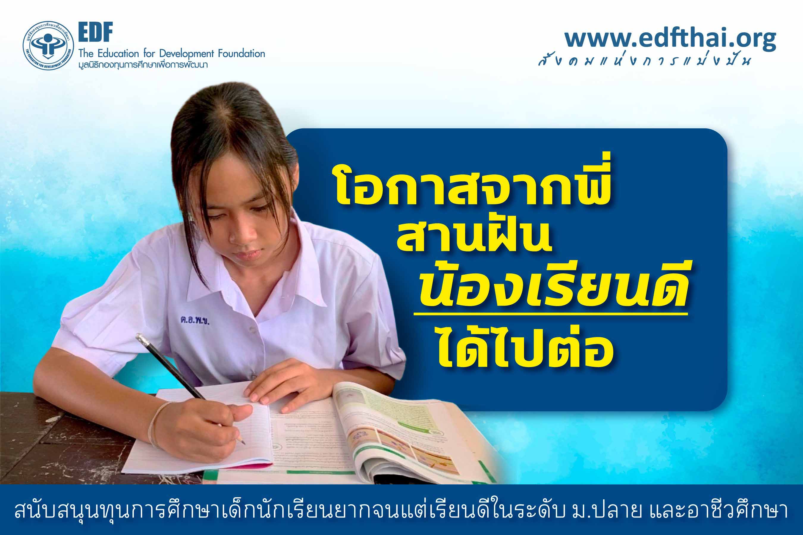 ส่งต่อ'โอกาสจากพี่สานฝันน้องเรียนดีได้ ไปต่อ'กับมูลนิธิEDF