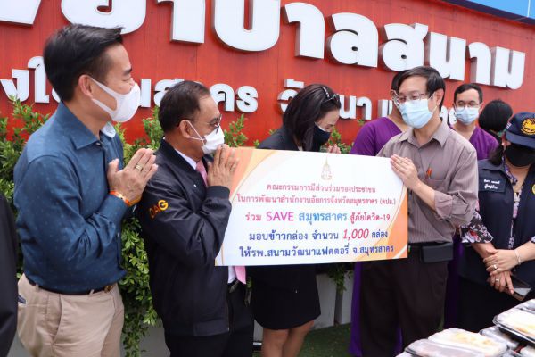 เมื่อเวลาประมาณ 11.00 น. ของวันอังคารที่ 8 มิถุนายน 2564 คุณบุรินทร์ สหัสธารากุล ในนามประธาน คปอ. ภาคเอกชน (ประธานคณะกรรมการมีส่วนร่วมของประชาชนในการพัฒนาสำนักงานอัยการจังหวัดสมุทรสาคร ภาคเอกชน) และในนามกรรมการ คปอ. ภาครัฐ (กรรมการในคณะกรรมการมีส่วนร่วมของประชาชนในการพัฒนาสำนักงานอัยการจังหวัดสมุทรสาคร) พร้อมด้วยนายศราวุธ เสียงแจ้ว อัยการจังหวัดสำนักงานอัยการจังหวัดสมุทรสาคร, นางศนิ อานันทสฤษฎ์ อัยการจังหวัด สำนักงานอัยการคดีเยาวชนและครอบครัวจังหวัดสมุทรสาคร และนายสารสิทธิ์ พวงไพบูลย์ อัยการจังหวัด สำนักงานอัยการคุ้มครองสิทธิฯจังหวัดสมุทรสาคร และคณะ ร่วมมอบข้าวกล่อง สนับสนุนทีมแพทย์โรงพยาบาลสนามวัฒนาแฟคตอรี่ จังหวัดสมุทรสาคร จำนวน 1,000 กล่อง โดยมีนายแพทย์ศุภศรัณย์ ศุภพัฒนพงศ์ ผู้อำนวยการโรงพยาบาลสนาม