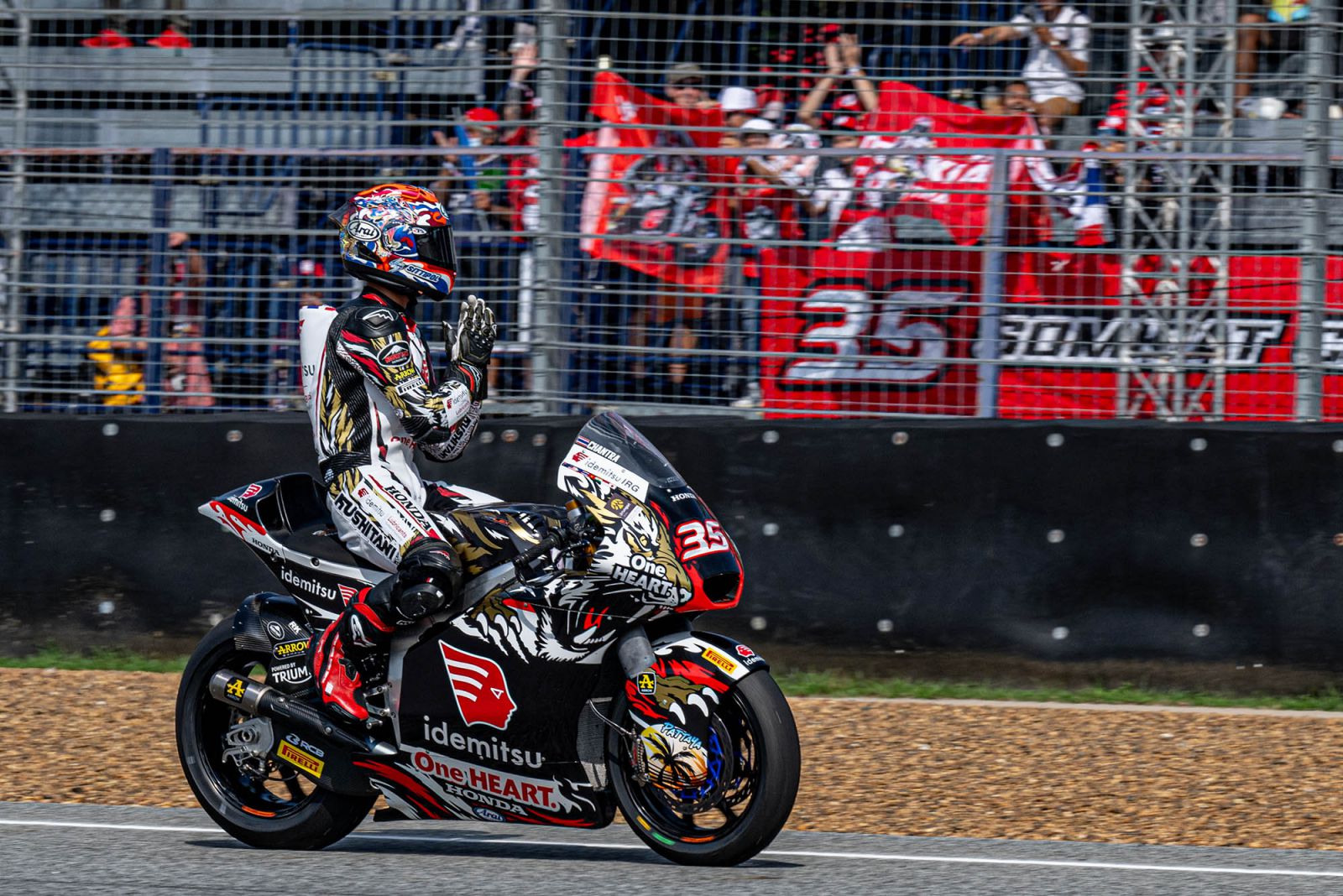 ส่วน “ก้อง” สมเกียรติ จันทรา นักบิดขวัญใจชาวไทยจาก อิเดมิตสึ ฮอนด้า ทีม เอเชีย ฝืนอาการบาดเจ็บบิดคว้ากริดที่ 13 ด้วยเวลาต่อรอบ 1 นาที 35.189 วินาที ตามหลังหัวแถว 0.461 วินาทีเท่านั้น โดยรถแข่งของดาวบิดไทยต้องโยกเบรกหลังมาไว้ที่แฮนด์ฝั่งซ้าย แทนที่ของเดิม ซึ่งปกติจะอยู่ที่เท้าขวา เพื่อให้สามารถใช้เบรกหลังได้ โดยไม่กระทบกับอาการบาดเจ็บ