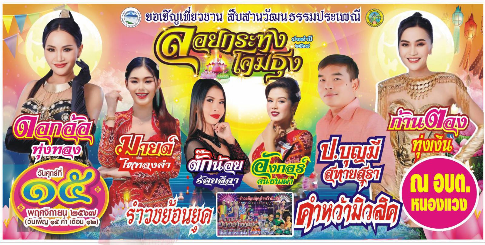 “จึงขอการันตีได้ว่าพี่น้องประชาชน นักท่องเที่ยวเข้ามาภายในบริเวณจัดงาน ก็จะได้สัมผัสกับความสุข ความแปลกใหม่ เพราะทางฝ่ายจัดงานได้มีการตระเตรียมการ ตกแต่ง ประดับประดาสถานที่ ในภาพรวมใกล้เสร็จสมบูรณ์ พร้อมที่จะเปิดงานและรอรับการมาเยี่ยมเยือนของพี่น้องประชาชน นักท่องเที่ยว ได้มาชื่นชม เก็บเป็นภาพประทับใจของความสวยงาม ของโคมธุงล้านนา และธุงอีสาน นอกจากนี้ ยังจะได้รับสุขความความบันเทิงจากมินิคอนเสิร์ต ศิลปินรับเชิญกิตติมศักดิ์ คือ “ไข่มุก” เฉลิมขวัญ หล่อตระกูล นายก อบจ.กาฬสินธุ์ และ แววตา อิทธิฤกษ์มงคล นายกกิ่งกาชาด อ.สมเด็จ ที่จะขึ้นเวทีดวลลูกคอ และฟิทเจอริ่งกับศิลปิลนักร้องหมอลำชื่อดัง ดอกอ้อ ทุ่งทอง ก้านตอง ทุ่งเงิน และศิลปินเพลง ป.มี สหายสุรา รำวงย้อนยุค คณะคำหว้ามิวสิค ที่จะมาเปิดฟลอร์สร้างสรรค์ความสุข ความบันเทิงให้กับพี่น้องประชาชน นักท่องเที่ยวอย่างจุใจและเต็มอิ่ม อย่าลืมวันที่ 15 พ.ย.67 นี้ มีนัดกันที่ อบต.หนองแวง หนองคูทด หนองน้ำเฉลิมพระเกียรติ หลัง อบต.หยนองแวง” นายนิยมกล่าว