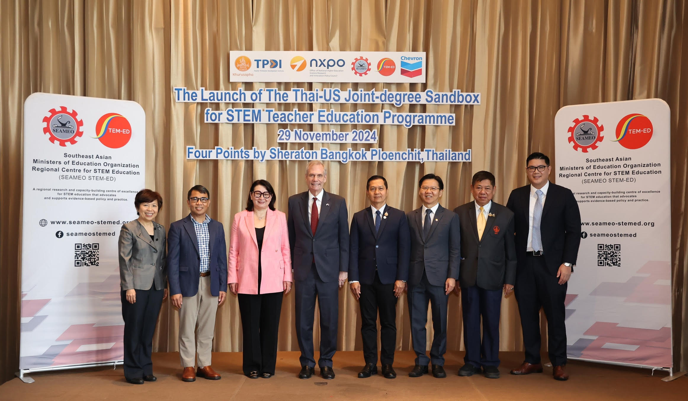 กรุงเทพฯ-ประเทศไทยเปิดก้าวแรก โครงการนำร่อง หลักสูตรปริญญาร่วมไทย-สหรัฐอเมริกา ครุศาสตร์/ศึกษาศาสตร์ ด้านสะเต็มศึกษา (Thai-US Joint-degree Sandbox for STEM Teacher Education Program) พลิกโฉมการพัฒนาครูมืออาชีพก้าวนำการเปลี่ยนแปลงโลกปัจจุบัน ต่อยอดจากโครงการครุศึกษายุคใหม่SEA-TEP (Southeast Asian Teacher Education Program) ในระดับภูมิภาค ภายใต้ความร่วมมือระหว่างศูนย์ระดับภูมิภาคว่าด้วยสะเต็มศึกษาขององค์การรัฐมนตรีศึกษาแห่งเอเชียตะวันออกเฉียงใต้ (ศูนย์ SEAMEO STEM-ED) สำนักงานสภานโยบายการอุดมศึกษา วิทยาศาสตร์ วิจัย และนวัตกรรมแห่งชาติ (สอวช.) สำนักงานเลขาธิการคุรุสภา และพันธมิตรภาคการศึกษาอีกมากมาย โดยจากที่ภาครัฐตระหนักถึงความสำคัญของการพัฒนาครูไทยให้ก้าวไกลสู่มาตรฐานระดับโลก จึงให้การสนับสนุนโครงการฯ ผ่านกระทรวงศึกษาธิการ และกระทรวงการอุดมศึกษา วิทยาศาสตร์ วิจัยและนวัตกรรม ซึ่งไม่เพียงแต่สะท้อนก้าวสำคัญของการศึกษาไทย แต่ยังตอบโจทย์ความต้องการกำลังคนคุณภาพที่สอดรับกับยุคสมัย พร้อมตั้งเป้าเป็นโมเดลต้นแบบเพื่อเตรียมความพร้อมแก่นิสิตนักศึกษาครูและครูประจำการให้มีคุณภาพระดับสากลผ่านการผสานหลักสูตรของสถาบันเครือข่ายการศึกษาในประเทศไทยและสหรัฐอเมริกา โดยมีทั้งเอกอัครราชทูตสหรัฐอเมริกาประจำประเทศไทย นักการศึกษา ผู้กำหนดหลักสูตรและนโยบายจากหลากหลายประเทศในเครือข่ายเข้าร่วมงานที่นับเป็นก้าวสำคัญของการพัฒนาครูจากต้นน้ำจากระดับประเทศสู่ภูมิภาค