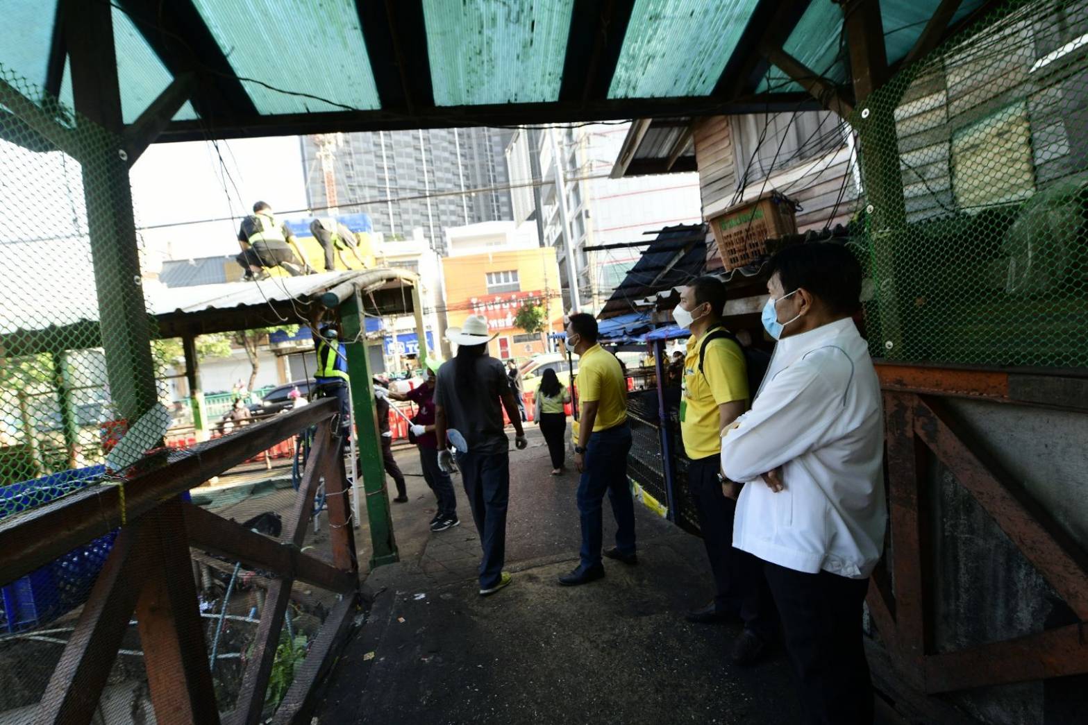 ในการนี้มี พล.ต.อ.อดิศร์ งามจิตสุขศรี ที่ปรึกษาของผู้ว่าราชการกรุงเทพมหานคร นายศุภกฤต บุญขันธ์ รองปลัดกรุงเทพมหานคร นายสิทธิชัย อรัณยกานนท์ ผู้ช่วยเลขานุการผู้ว่าราชการกรุงเทพมหานคร นายอนุชิต พิพิธกุล ผู้อำนวยการสำนักเทศกิจ นางสาวเกศจริน สามิภักดิ์ ผู้อำนวยการเขตคลองเตย พร้อมด้วยคณะผู้บริหาร ข้าราชการ และเจ้าหน้าที่เขตคลองเตย สำนักเทศกิจ สำนักการโยธา สำนักการจราจรและขนส่ง การไฟฟ้านครหลวง การประปานครหลวง NT กองบัญชาการตำรวจนครบาล สถานีตำรวจนครบาลท่าเรือ และหน่วยงานที่เกี่ยวข้อง ร่วมลงพื้นที่