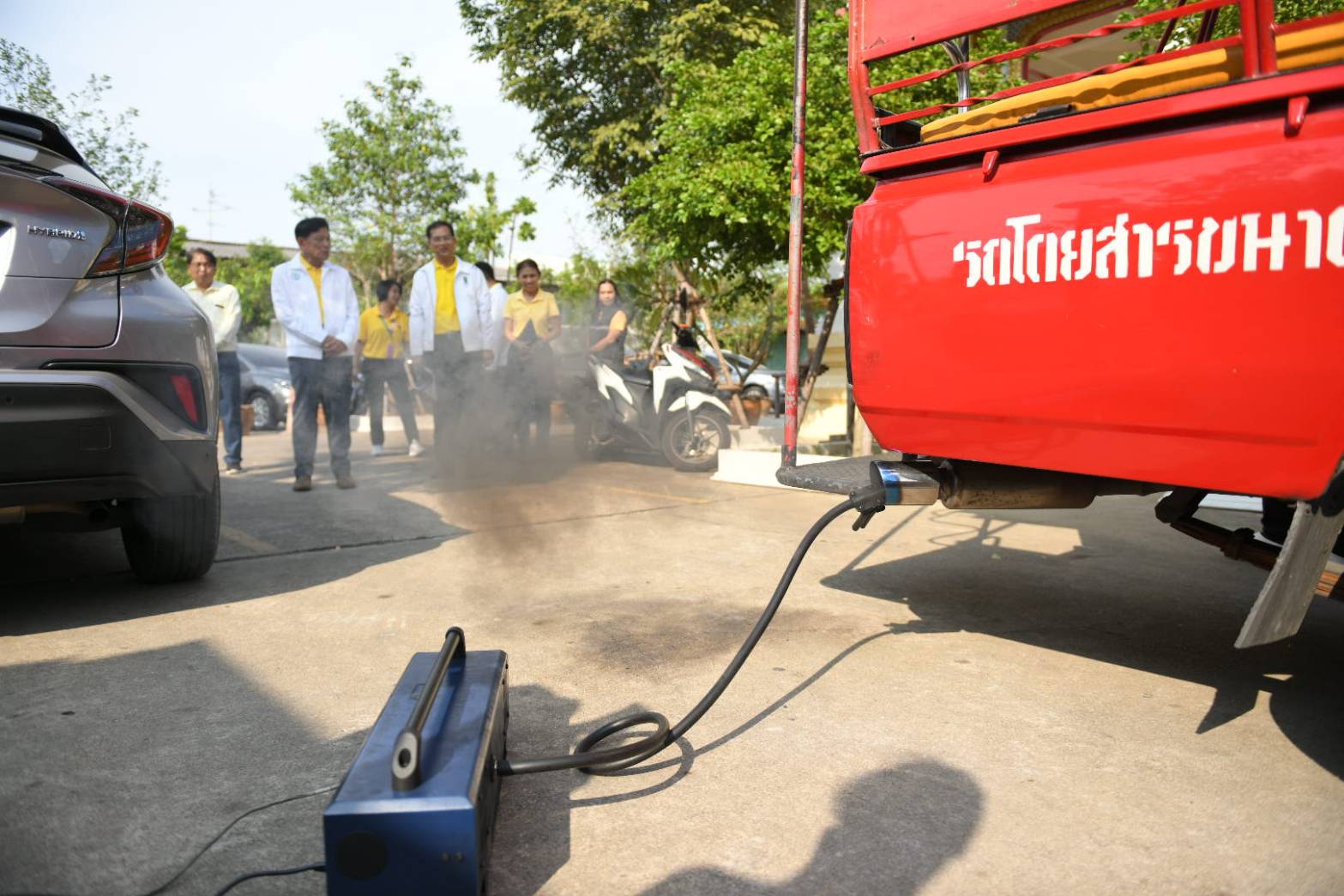 ตรวจมาตรการป้องกันและแก้ไขปัญหาฝุ่น PM2.5 ท่าปล่อยรถโดยสารขนาดเล็กร่วมบริการสายที่ 1411-1 วัดดีดวด-วัดใหม่พิเรนท์ โดยเขตฯ ได้ใช้เครื่องตรวจวัดควันดำด้วยระบบความทึบแสง จากนั้นเร่งเครื่องยนต์อย่างรวดเร็วจนสุดคันเร่ง และคงไว้ที่ความเร็วสูงสุดไม่น้อยกว่า 2 วินาที ทำการตรวจวัดค่าควันดำ 2 ครั้ง ใช้ค่าสูงสุดที่วัดได้เป็นเกณฑ์ตัดสิน สำหรับค่ามาตรฐานควันดำตามประกาศกระทรวงทรัพยากรธรรมชาติและสิ่งแวดล้อม เรื่อง กำหนดมาตรฐานค่าควันดำของรถยนต์ที่ใช้เครื่องยนต์แบบจุดระเบิดด้วยการอัด พ.ศ. 2564 มีผลบังคับใช้ตั้งแต่ 13 เมษายน 2565 กำหนดค่ามาตรฐานควันดำตรวจด้วยเครื่องมือวัดระบบความทึบแสงต้องไม่เกิน 30% และตรวจด้วยเครื่องมือวัดระบบกระดาษกรองต้องไม่เกิน 40% ส่วนค่ามาตรฐานเสียงระดับเสียงปลายท่อไอเสียรถยนต์ต้องไม่เกิน 100 เดซิเบล นอกจากนี้ เขตฯ ได้จัดทำแผนปฏิบัติการตรวจสอบและควบคุมสถานประกอบการที่ก่อให้เกิดปัญหาฝุ่น PM2.5 ตามมาตรการควบคุมมลพิษทางอากาศอย่างต่อเนื่อง พร้อมทั้งประชาสัมพันธ์ให้ความรู้เกี่ยวกับฝุ่น PM2.5 กำชับสถานประกอบการในพื้นที่ให้ปฏิบัติตามมาตรฐานที่กฎหมายกำหนดอย่างเคร่งครัด เพื่อควบคุมค่าฝุ่น PM2.5 ให้อยู่ในเกณฑ์มาตรฐาน รวมถึงป้องกันมลพิษทางอากาศและลดผลกระทบต่อสิ่งแวดล้อมอย่างยั่งยืน