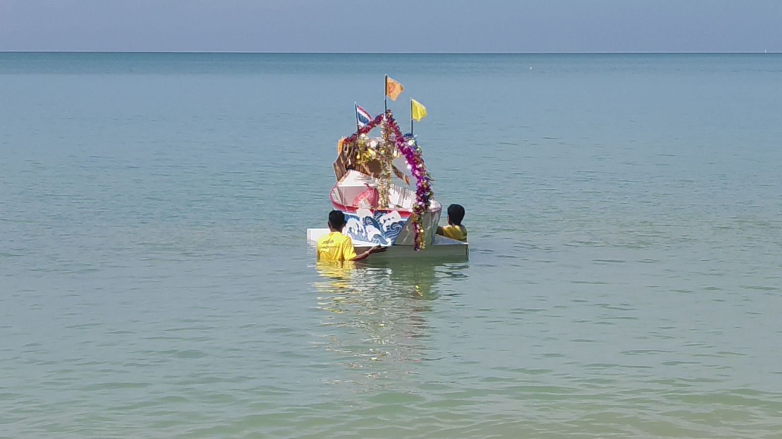 พังงา-ชาวบ้านบ้านบางสัก อำเภอตะกั่วป่า จังหวัดพังงา จัดพิธีทำบุญลอยเรือสะเดาะเคราะห์ส่งท้ายปีเก่าตอนรับปีใหม่ ที่เป็นประเพณีดั้งเดิมที่ทำสืบต่อกันมานานนับร้อยปีทุกวันขึ้นปีใหม่