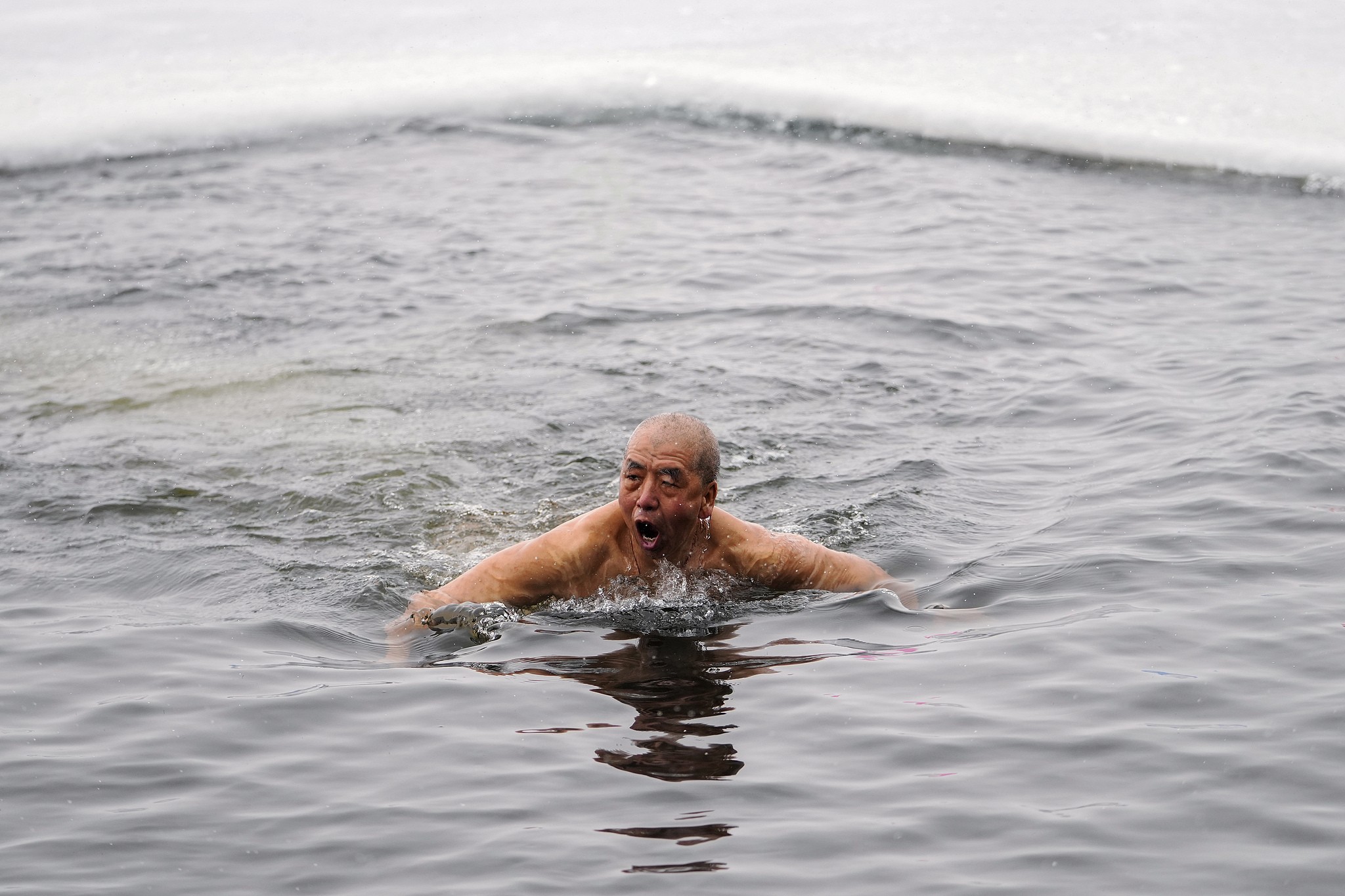 'คนแก่ชาวจีน'มีหัวใจ-ร่างกายแข็งแกร่ง ลงว่ายน้ำลบ10C ํที่เมืองฮาร์บิน