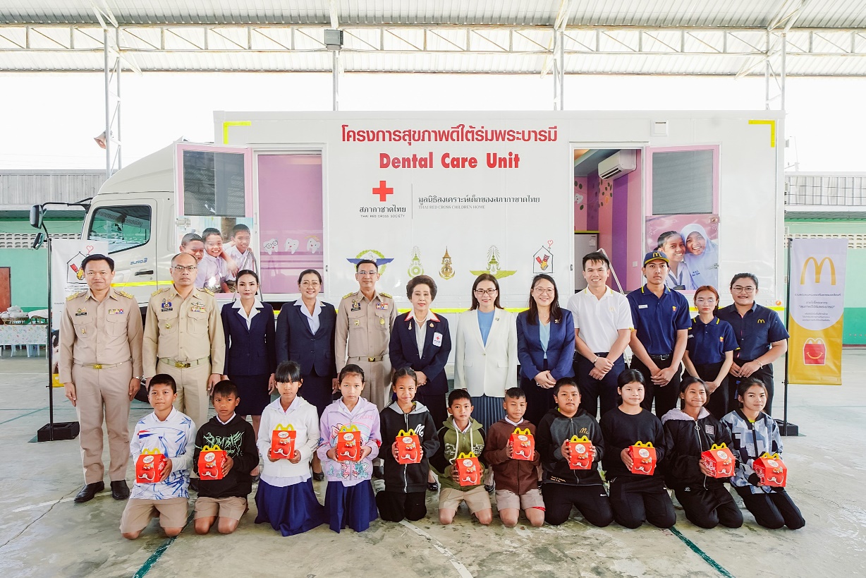 นางสาวกิตติวรรณ อนุเวชสกุล รองประธานกรรมการ มูลนิธิแมค แฮปปี้ แฟมิลี่ และประธานกรรมการบริหารบริษัท แมคไทย จำกัด กล่าวว่า “เยาวชนคือผู้กำหนดทิศทางการขับเคลื่อนสังคมในอนาคต การร่วมส่งเสริมให้เยาวชนเติบโตอย่างมีคุณภาพ และมีสุขภาพร่างกายที่แข็งแรงจึงเป็นเรื่องสำคัญ ในปัจจุบันมีเยาวชนไทยจำนวนมาก โดยเฉพาะอย่างยิ่งในพื้นที่ห่างไกลที่ยังเป็นปัญหาหลักของการขาดการดูแลเอาใจใส่ในสุขอนามัยช่องปากและฟันอย่างถูกวิธี อีกทั้งยังไม่สามารถเข้าถึงบริการทันตกรรมพื้นฐานได้อย่างทั่วถึง และนำมาซึ่งผลกระทบต่อสุขภาพร่างกายในที่สุด เราจึงไม่นิ่งนอนใจ และมุ่งมั่นที่จะตอบสนองความต้องการด้านทันตสุขภาพให้กับเด็กๆ ให้ครอบคลุมไปถึงทั่วประเทศ โดยนับแต่เริ่มต้นโครงการฯ ในปี 2558 -2567 (ระยะ 1-2) ได้ออกหน่วยบริการตรวจสุขภาพฟันในเยาวชนกว่า 55,000 คนโดยไม่คิดค่าใช้จ่าย และนับเป็นพระมหากรุณาธิคุณ ของมูลนิธิ แมค แฮปปี้ แฟมิลี่ ที่ได้รับพระราชานุญาตจาก สมเด็จพระกนิษฐาธิราชเจ้า กรมสมเด็จพระเทพรัตนราชสุดา ฯ สยามบรมราชกุมารี ให้จัดทำโครงการ “สุขภาพดีใต้ร่มพระบารมี” ร่วมกับ มูลนิธิสงเคราะห์เด็กของสภากาชาดไทยอย่างต่อเนื่องในระยะที่ 3 ตั้งแต่เดือนมกราคม 2568 - ธันวาคม 2572 และ ขอขอบคุณพันธมิตรที่แข็งแกร่งและมีจุดยืนร่วมกันกับเราที่มุ่งส่งเสริมสุขภาพฟันที่ดีขึ้นให้แก่เด็กๆ นอกจากกิจกรรมการออกหน่วยรถทันตกรรมเคลื่อนที่ฯ แล้วยังมีกลุ่มจิตอาสาจากบริษัท แมคไทย จำกัด เข้าร่วมกิจกรรมและได้รับการสนับสนุนของเล่น ‘แฮปปี้มีล’ จากแมคโดนัลด์ เพื่อแจกรอยยิ้มและความสุขให้แก่เด็กๆ ด้วยเช่นกัน”